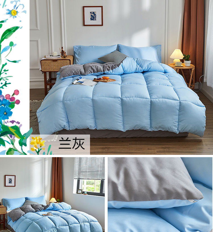 (总)VIP被业 2025新款高克重加绒加厚牛奶绒冬被拼接设计被子被芯,白灰,灰色,蓝灰,米蓝,米粉
