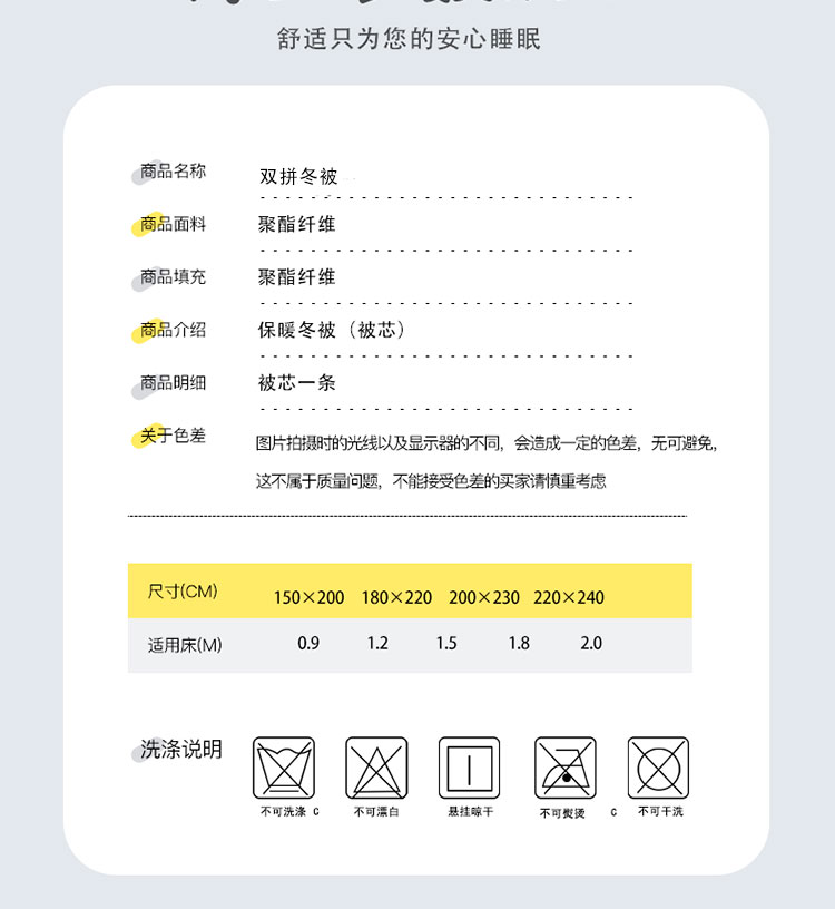 商品名称:(总)VIP被业 2021新款双拼冬被