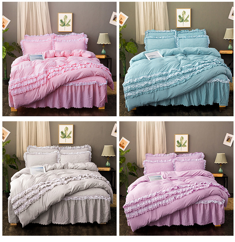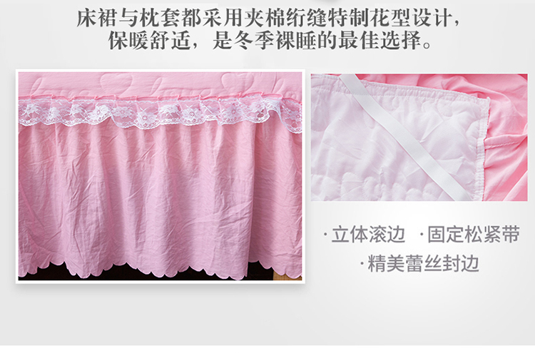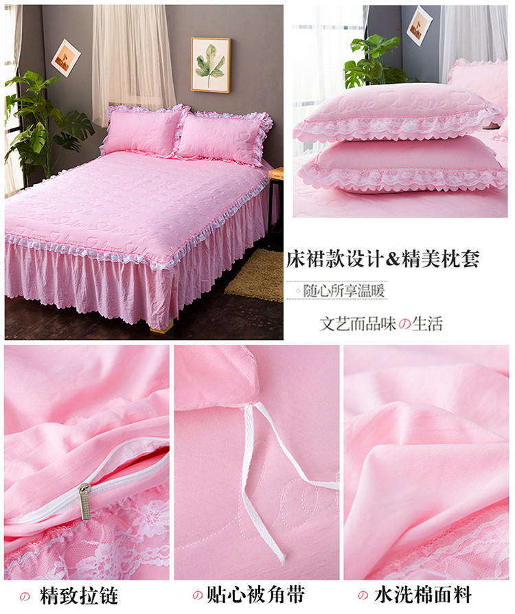梦柏家纺 2021新款水洗棉夹棉床裙四件套 公主粉