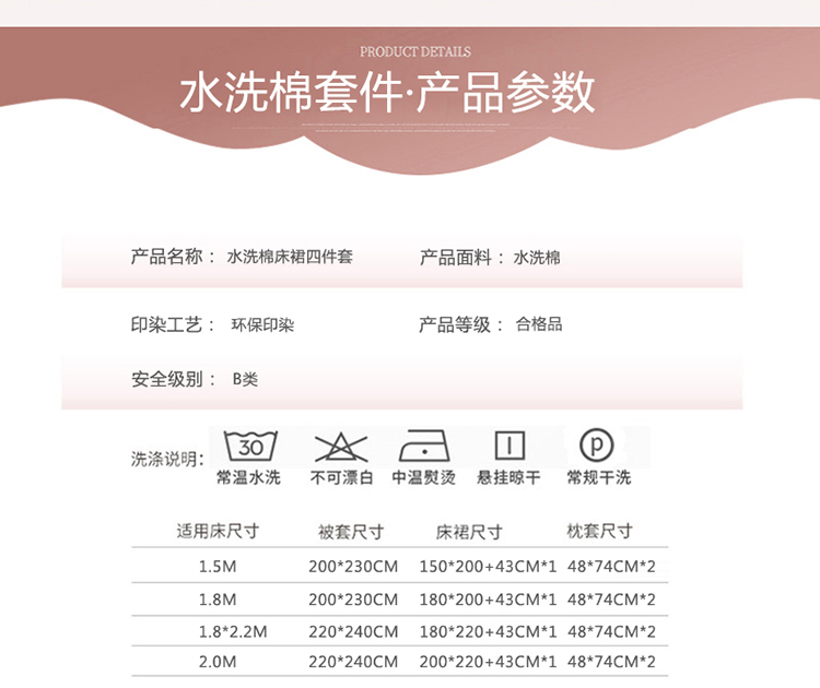 商品名称:梦柏家纺 2021新款水洗棉夹棉床裙四件套 公主粉