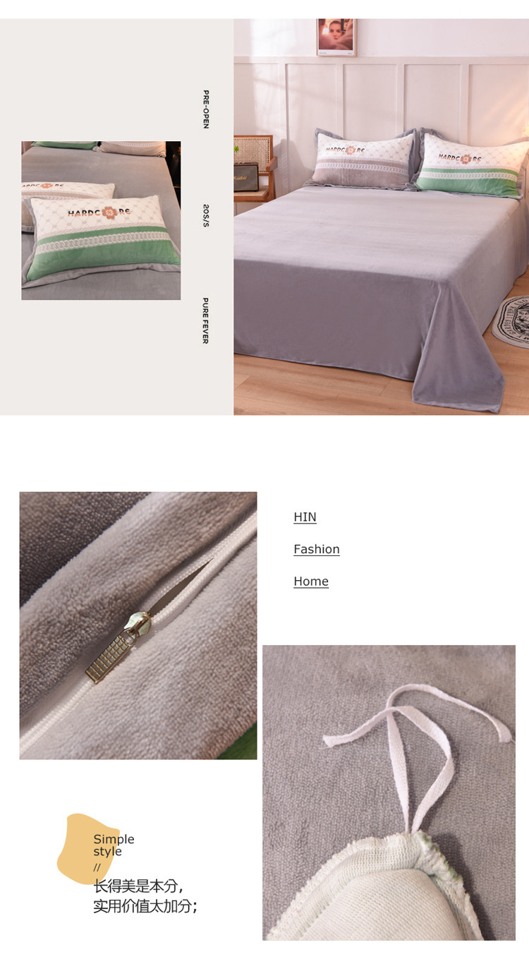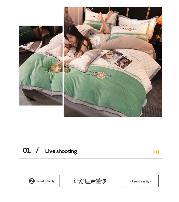 商品名称:欧冠 2021新款丁香花暖绒刺绣四件套 栀子花-永恒翡翠绿