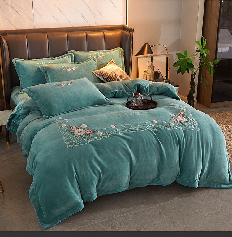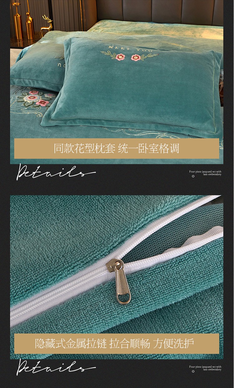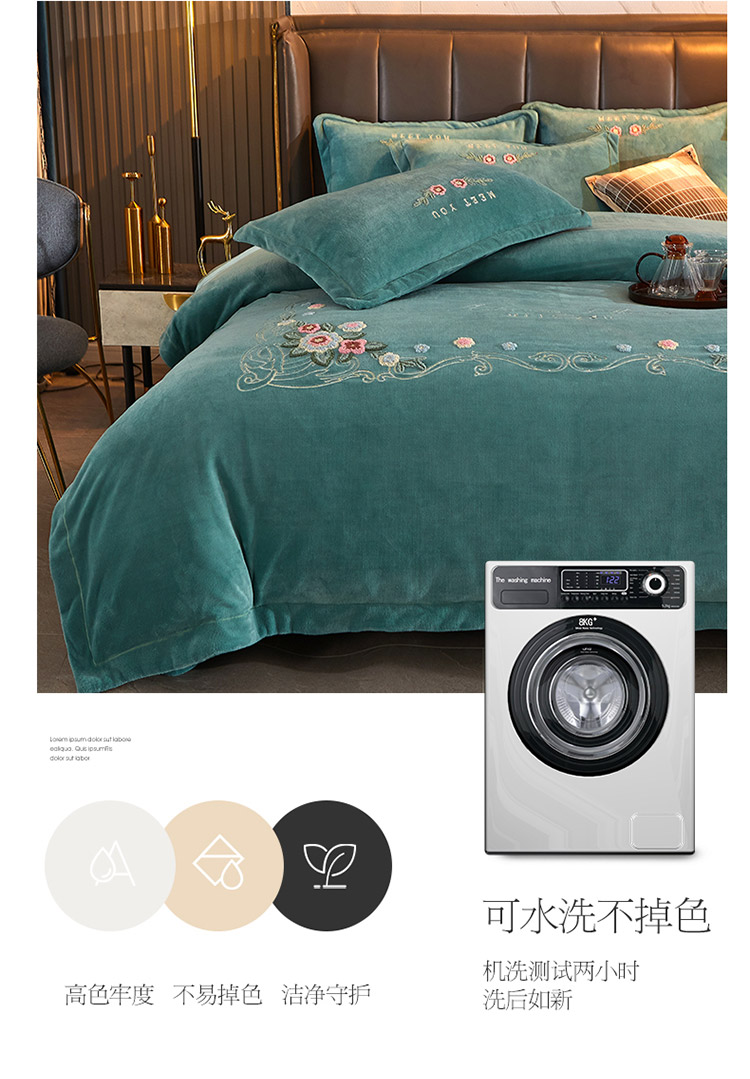 (总)金窝窝家纺 2024新款重工刺绣280克A类婴儿牛奶绒刺绣四件套,向阳花开—粉,向阳花开—红,向阳花开—蓝,向阳花开—绿