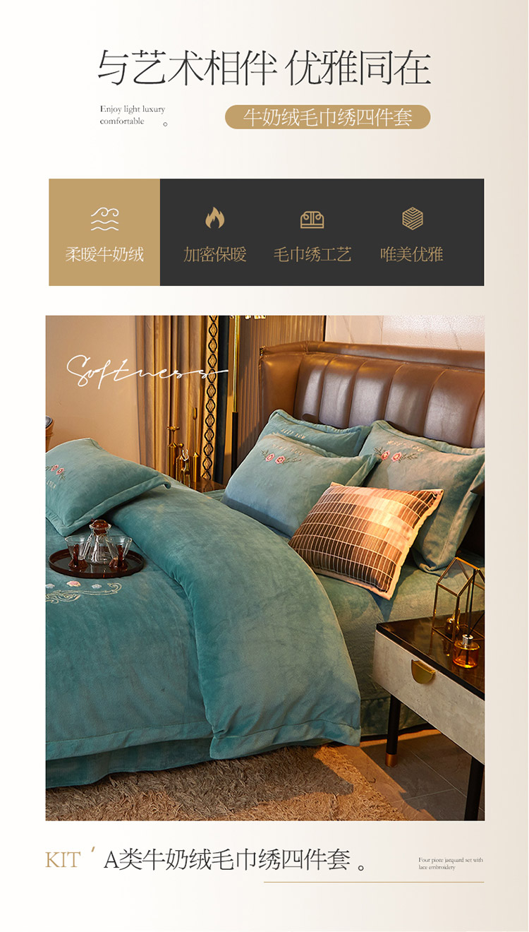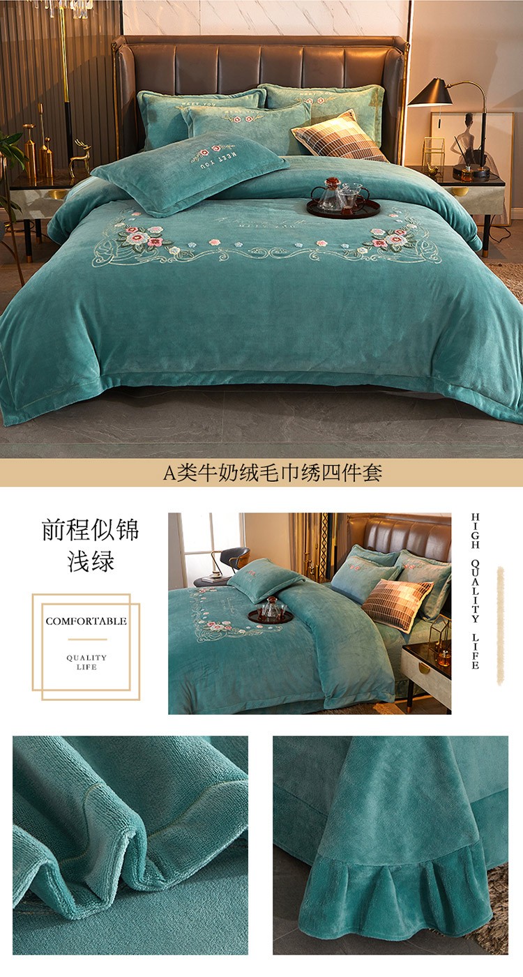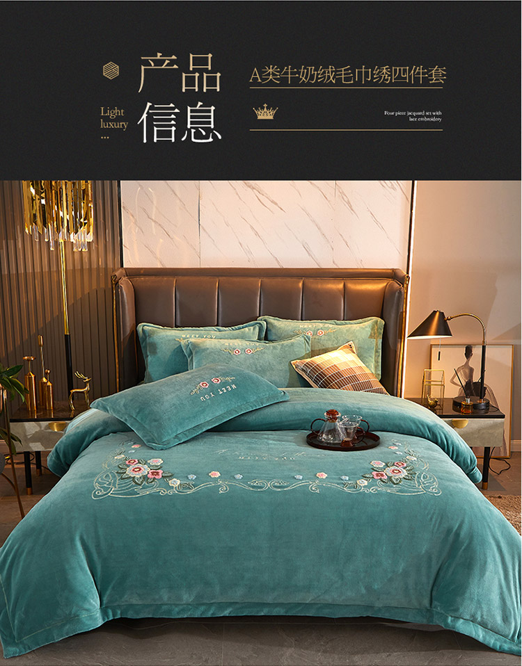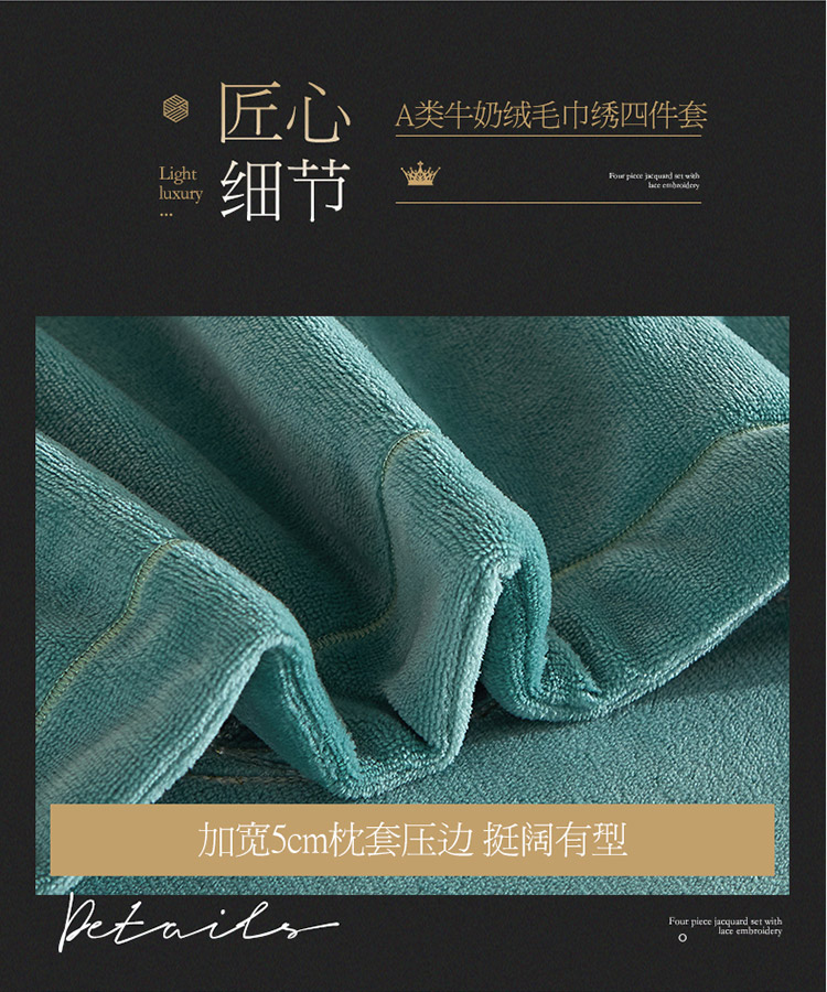 商品名称:2024款220克加厚牛奶绒毛巾绣一字绣四件套前程似锦阳光绿