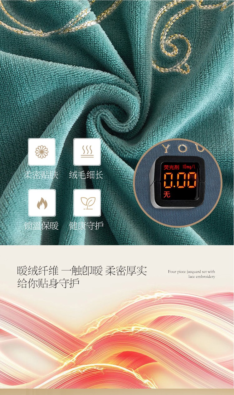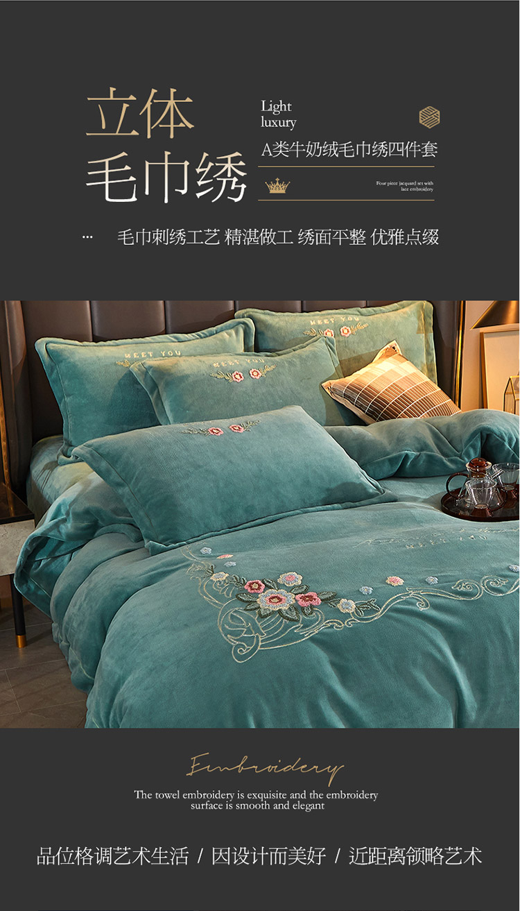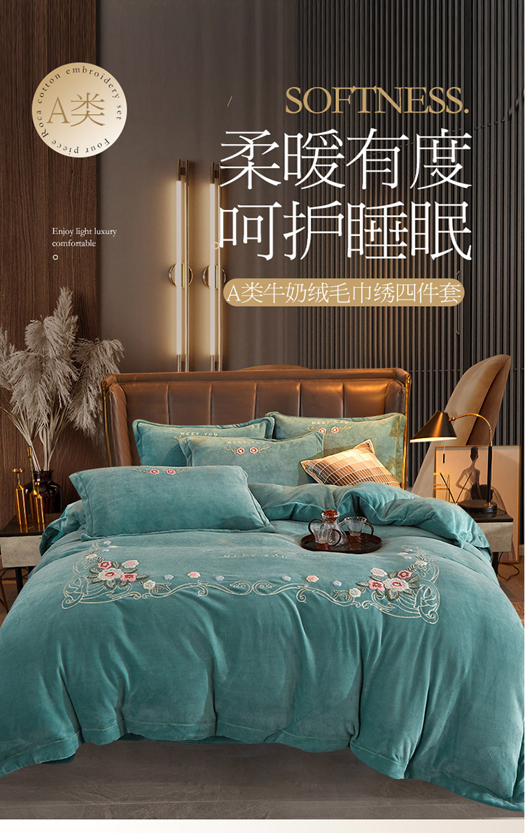 商品名称:2024款220克加厚牛奶绒毛巾绣一字绣四件套前程似锦阳光绿