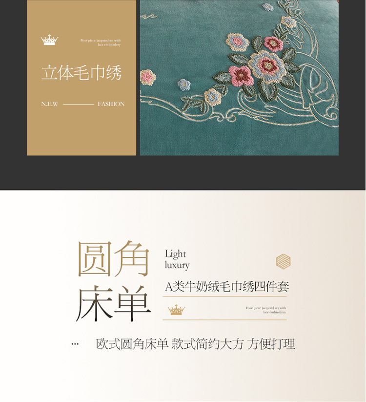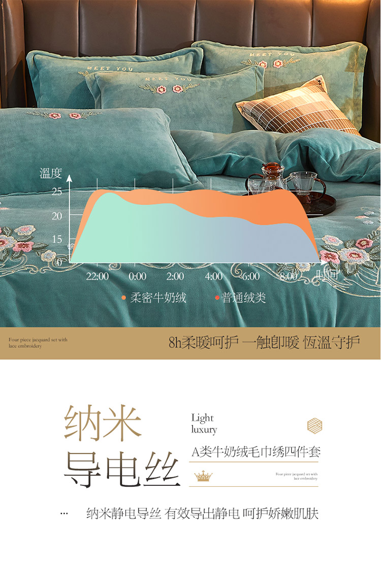 (总)金窝窝家纺 2024新款婴儿级牛奶绒拼接刺绣烂花雕花绒四件套--朱丽叶系列,朱丽叶-粉,朱丽叶-灰,朱丽叶-咖,朱丽叶-蓝,朱丽叶-绿