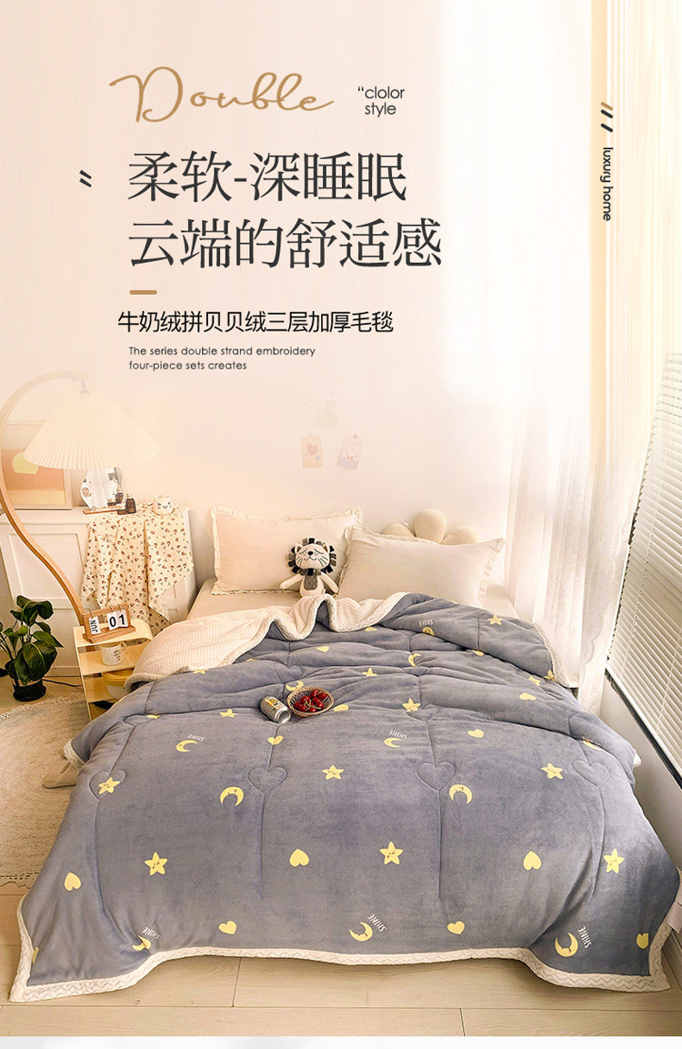 商品名称:慕尚家纺2022新款牛奶绒贝贝绒三层加厚毛毯加厚毯-星月