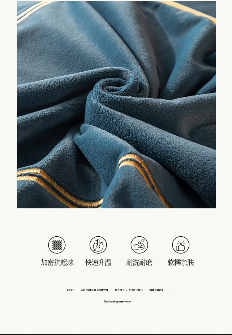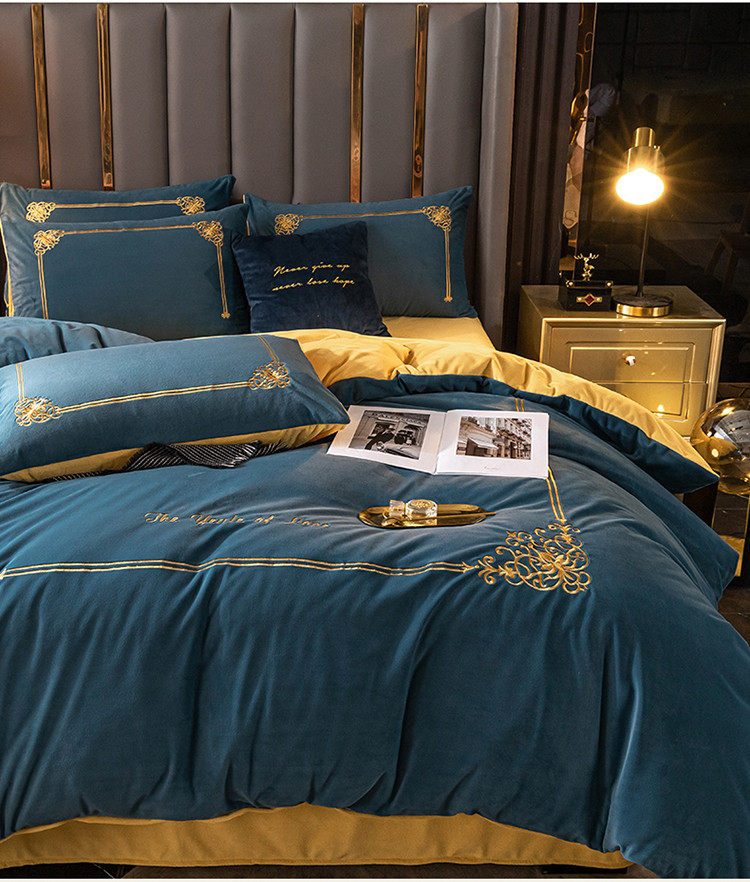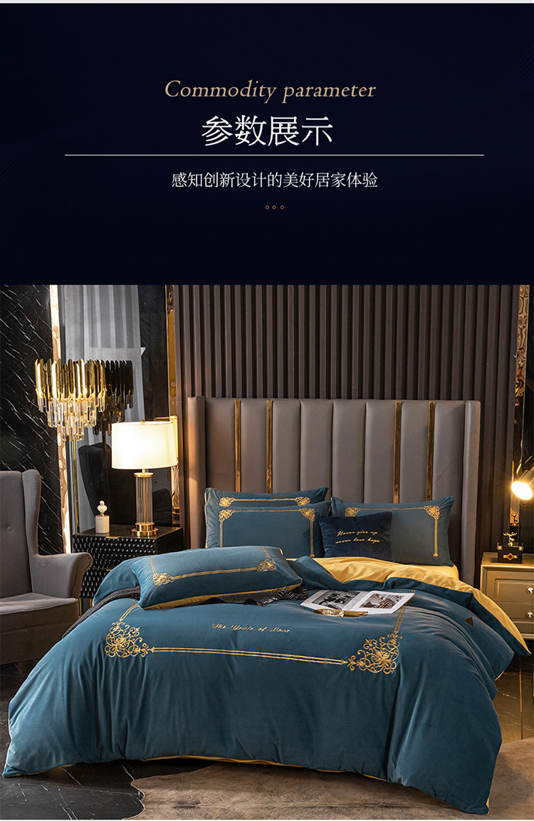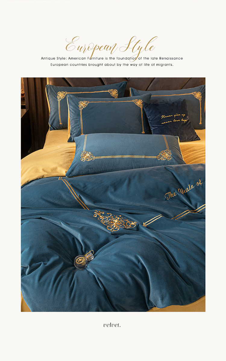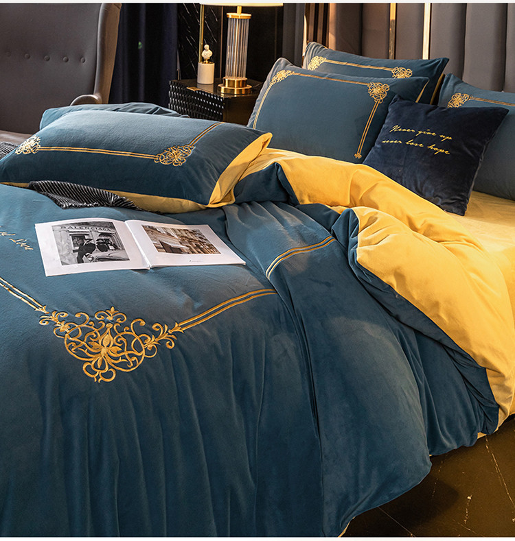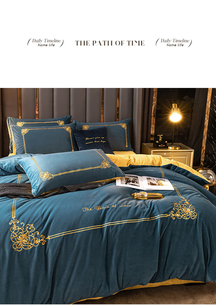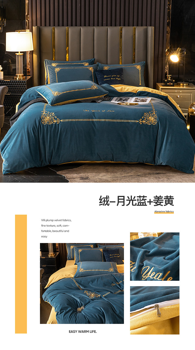 商品名称:慕色家纺2021新款欧式婴儿绒刺绣四件套 绒-月光蓝+姜黄