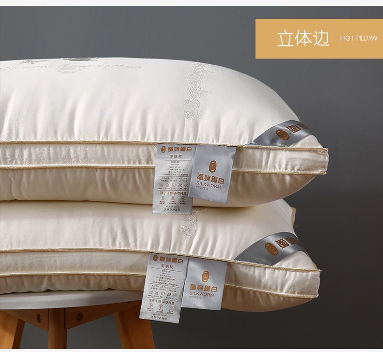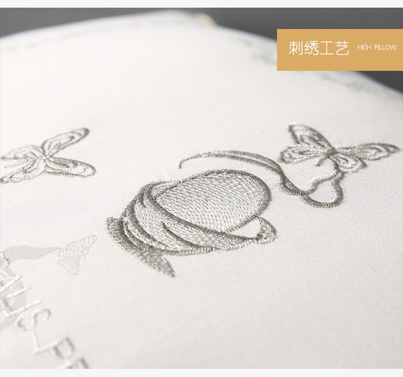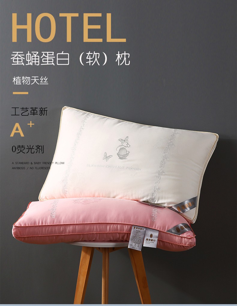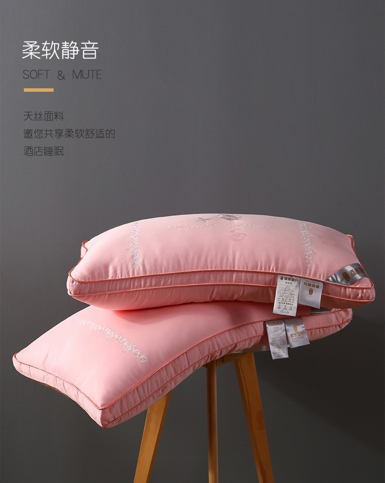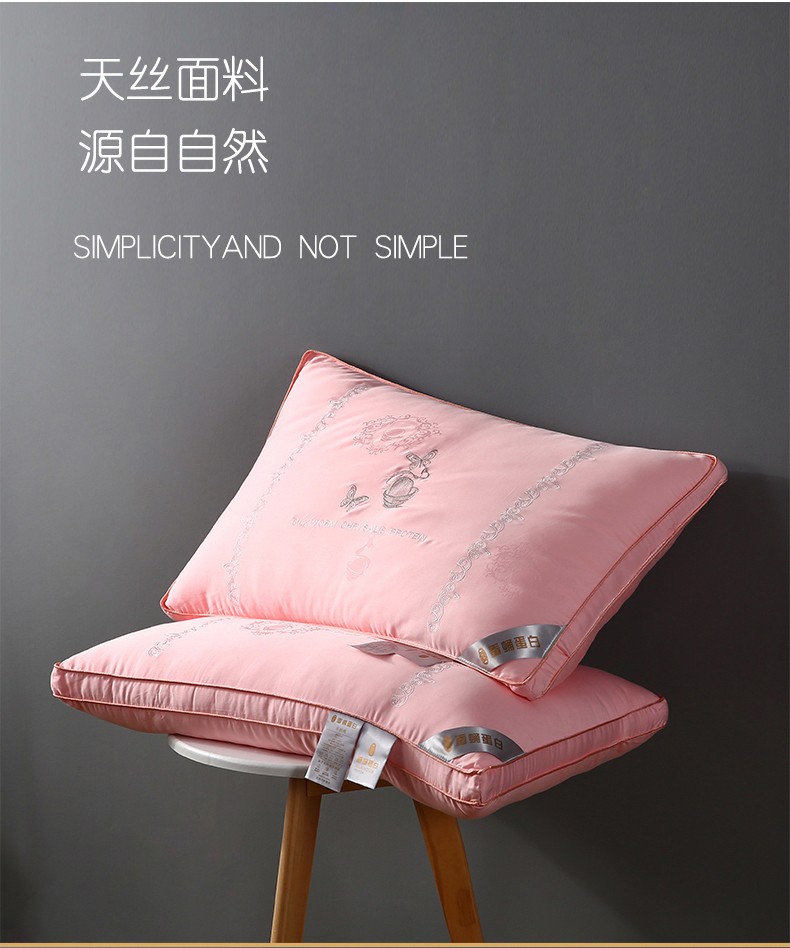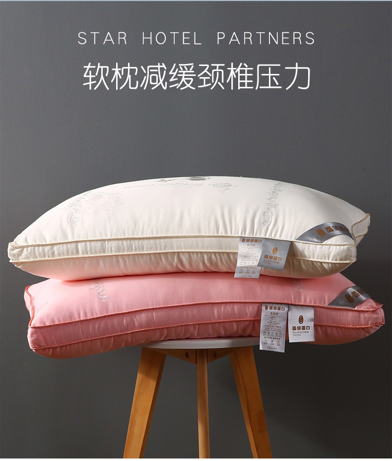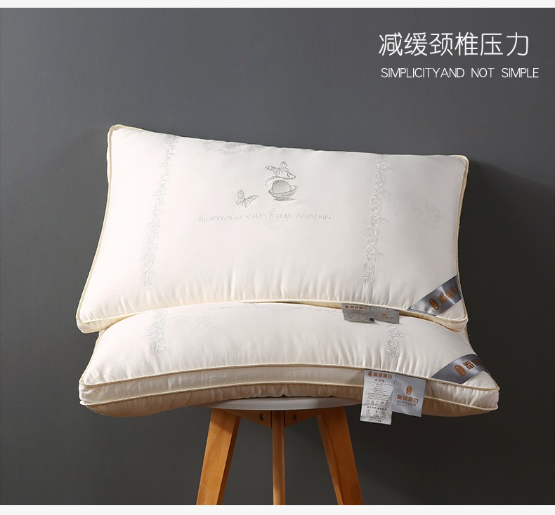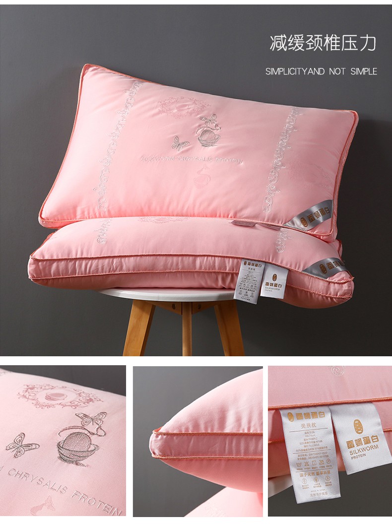 轻奢 真丝蚕蛹蛋白羽丝绒枕头刺绣成人护颈单人枕芯舒适软枕