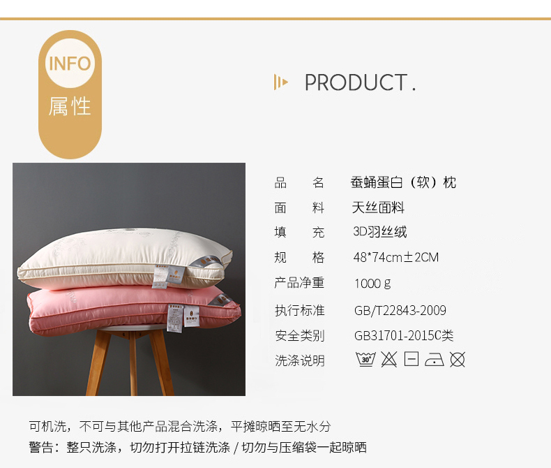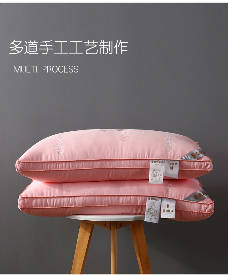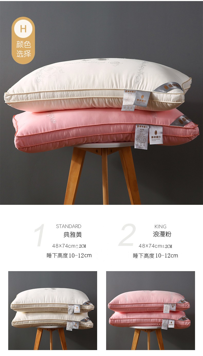 商品名称:轻奢 真丝蚕蛹蛋白羽丝绒枕头刺绣成人护颈单人枕芯舒适软枕