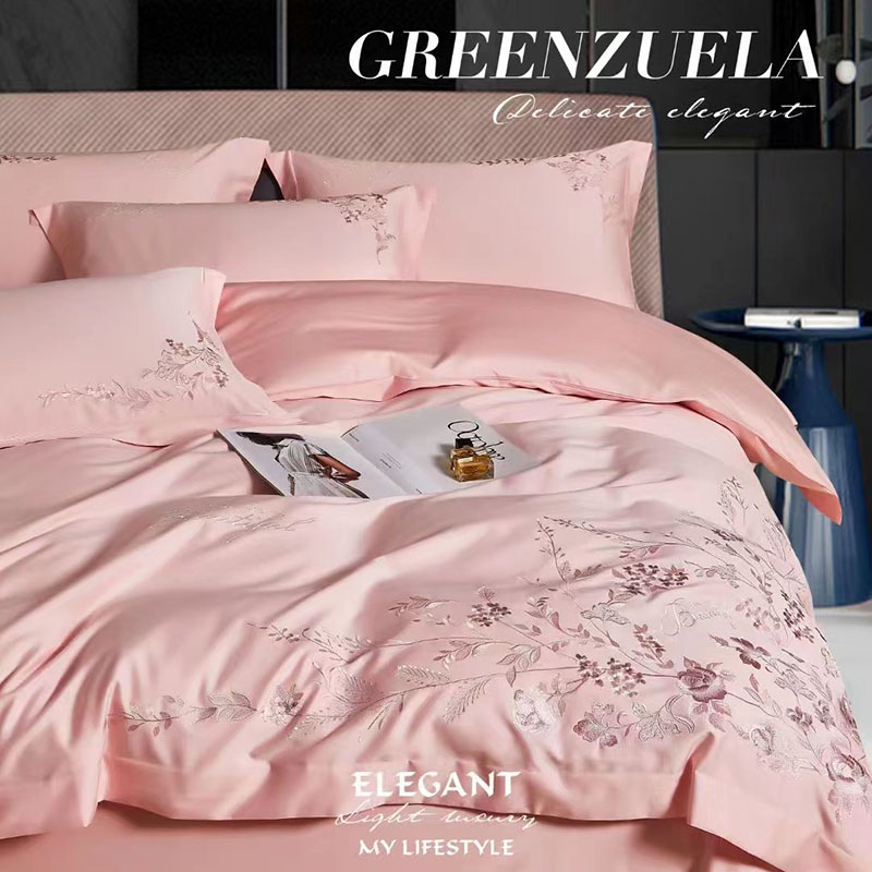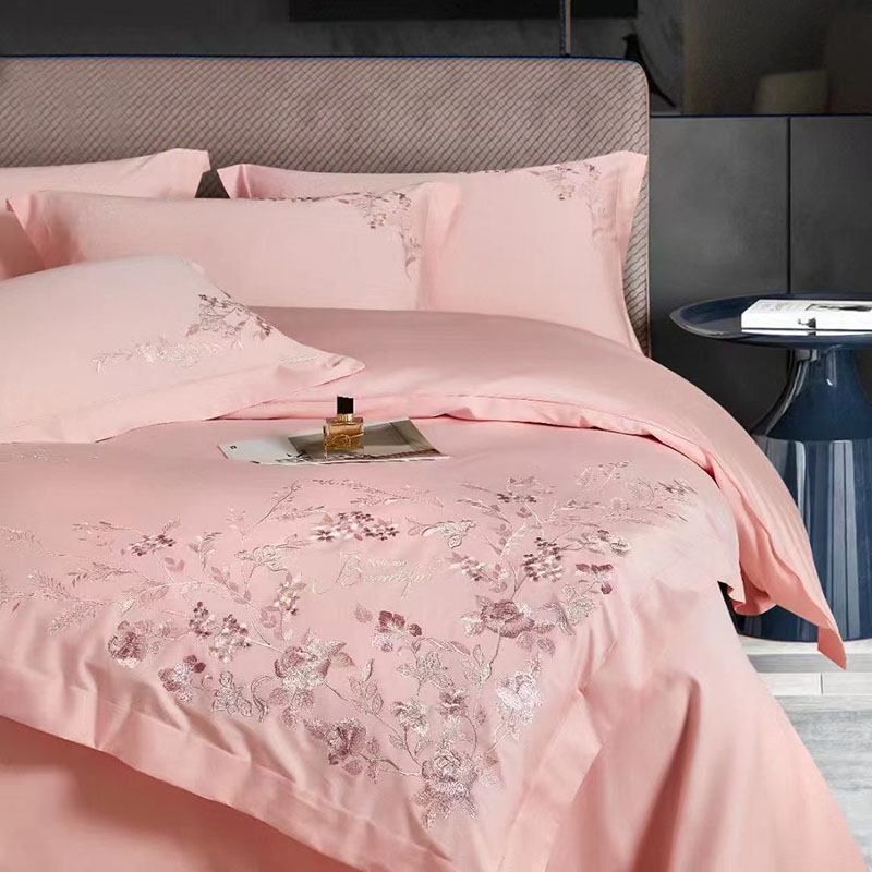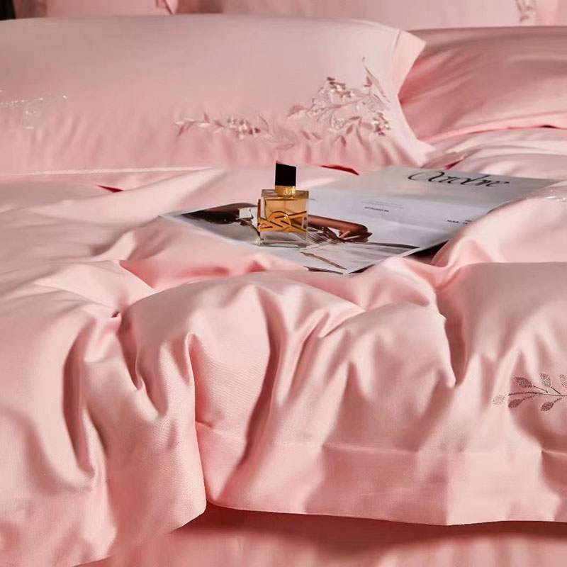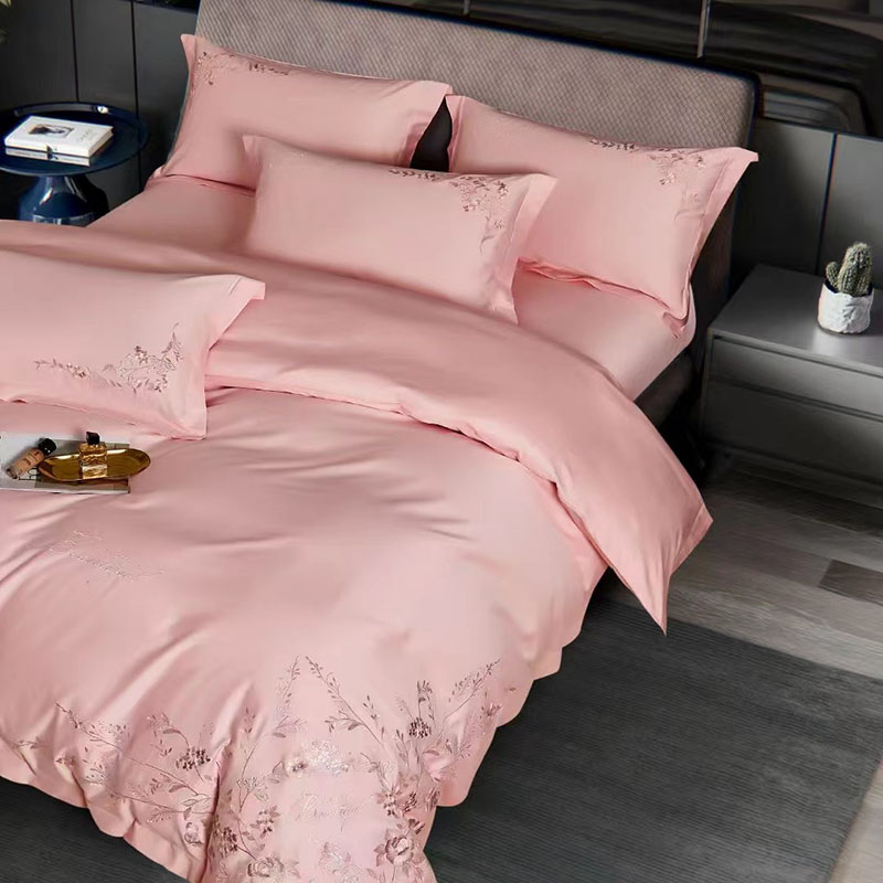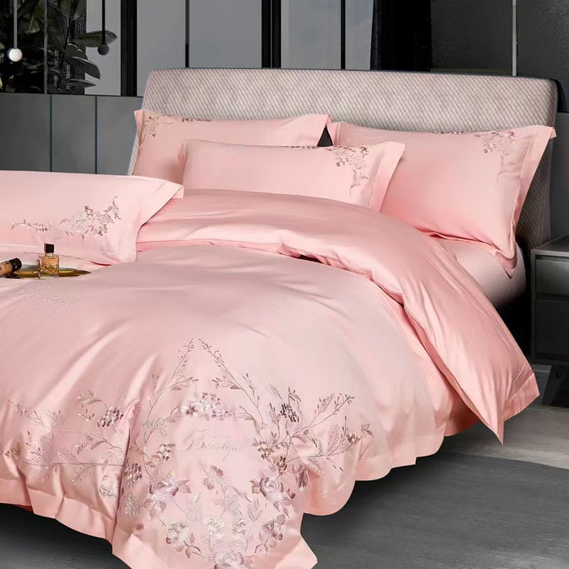 (总)玖玖爱家纺 2023新款120支贡缎长绒棉刺绣梦柔系列四件套,梦柔-香槟金,梦柔-香橙桔,梦柔-高级灰,梦柔-水蓝,梦柔-芙蓉玉