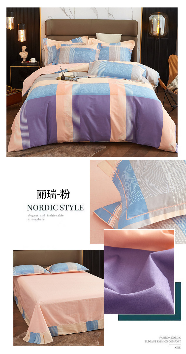 商品名称:金纱玉纺 2022新款全棉大版印花13372四件套 丽瑞-粉