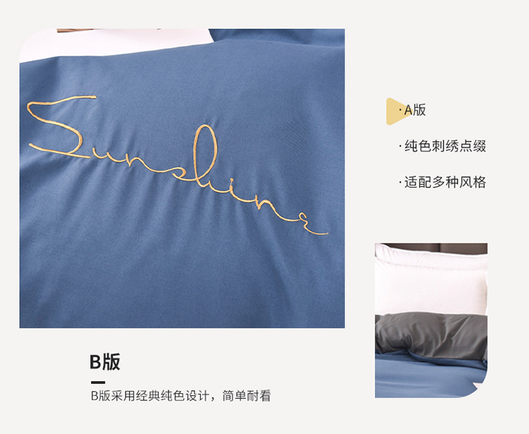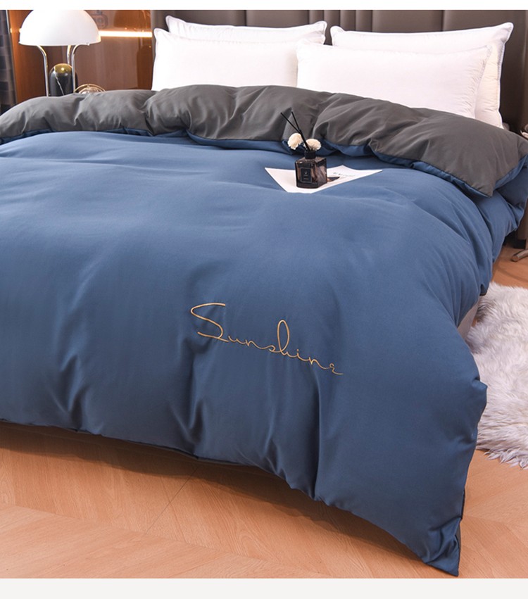 七仙女家纺 2025新款亲肤磨毛绣花款单被套直播供货 宾利蓝+深灰