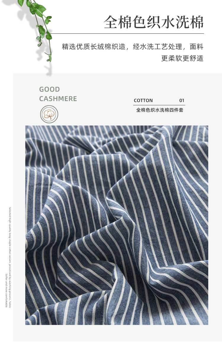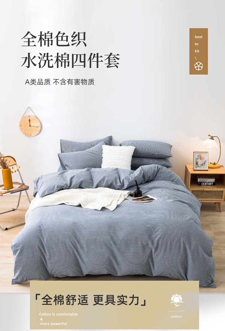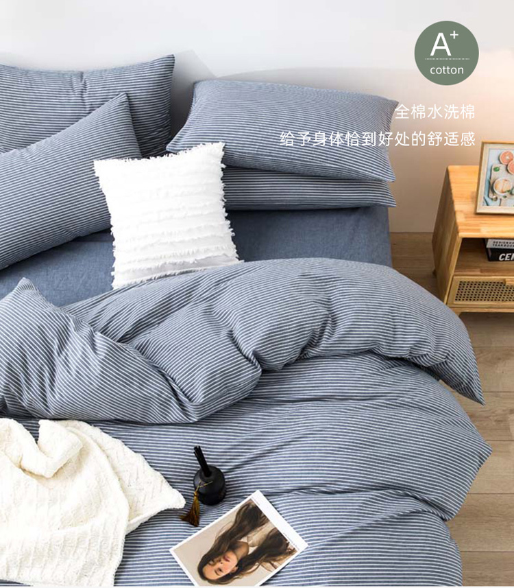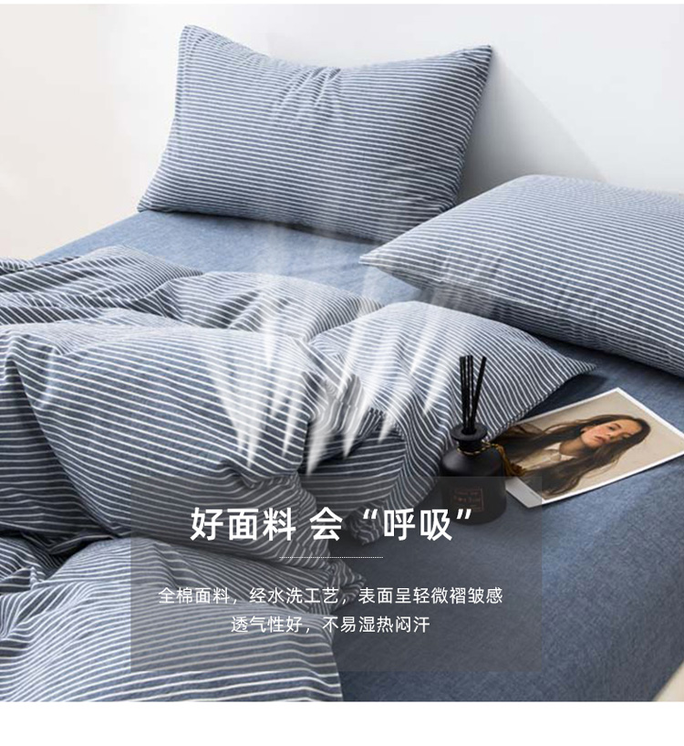 当前位置: 91家纺网 > 商品网购 > 床品套件 > 四件套 > 水洗棉四件套 > 柠萌家居 新款无印良品全棉色织水洗棉四件套 牛仔蓝细条