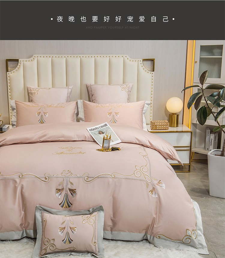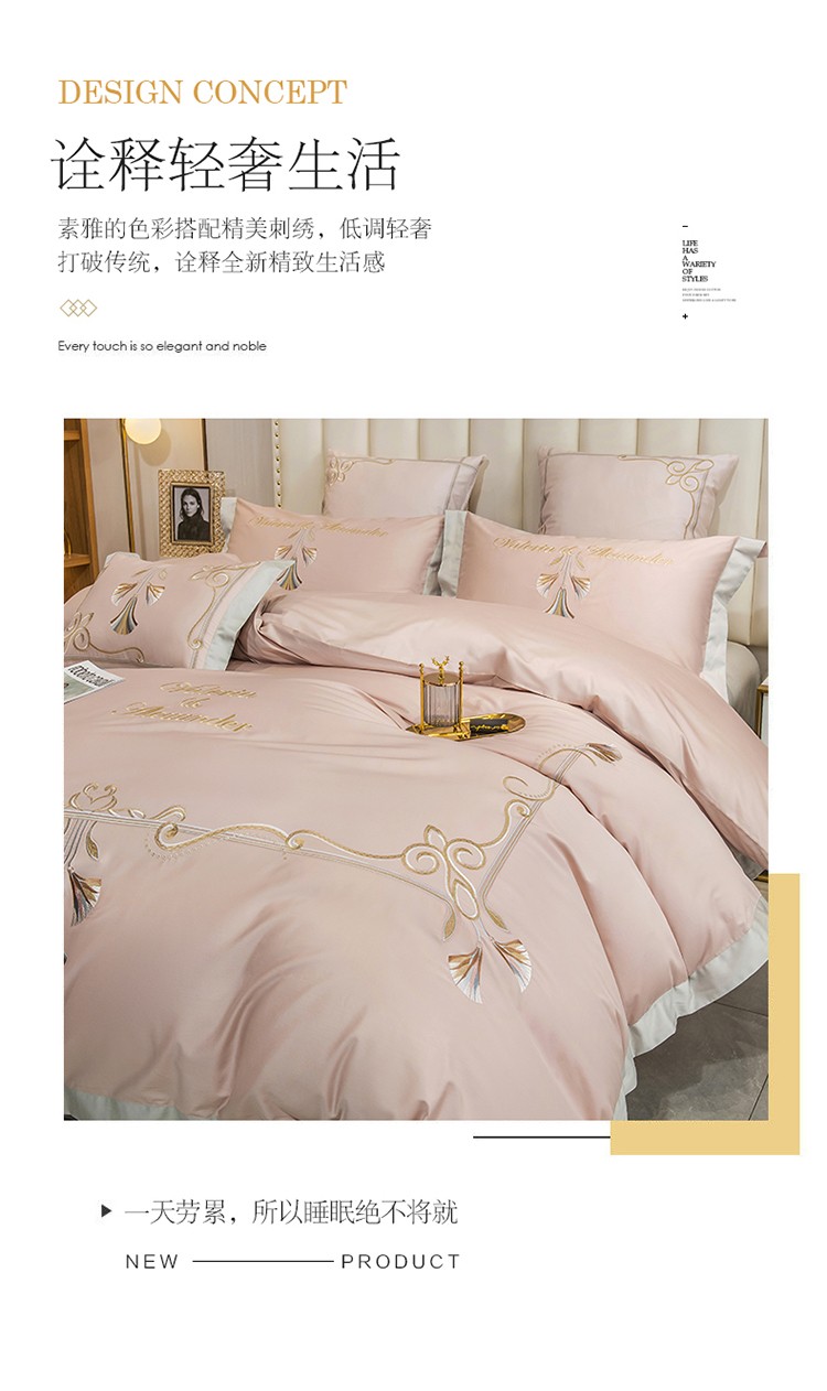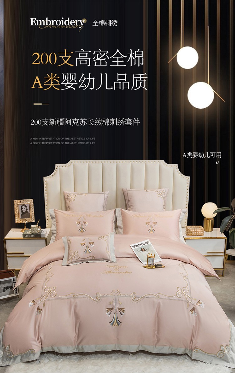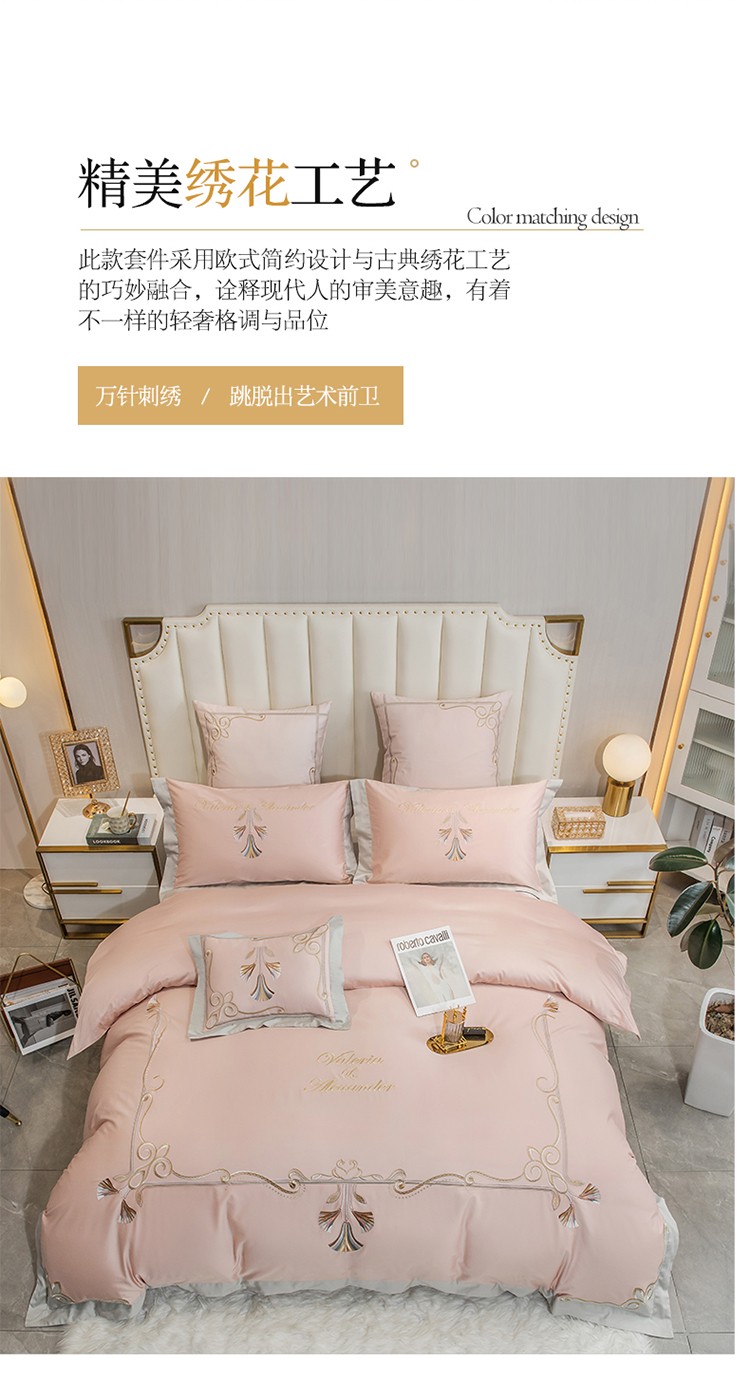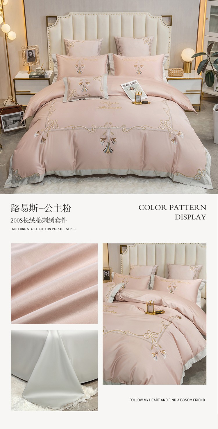 商品名称:家居1号2024新款长绒棉刺绣四件套路易斯风格二 路易斯公主粉