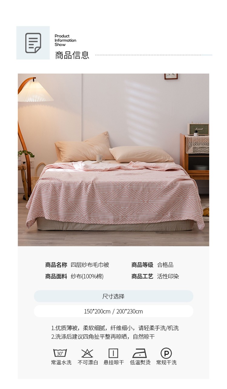 商品名称:雯雨 2022新款无印风纱布毛巾被夏被直播 三角粉