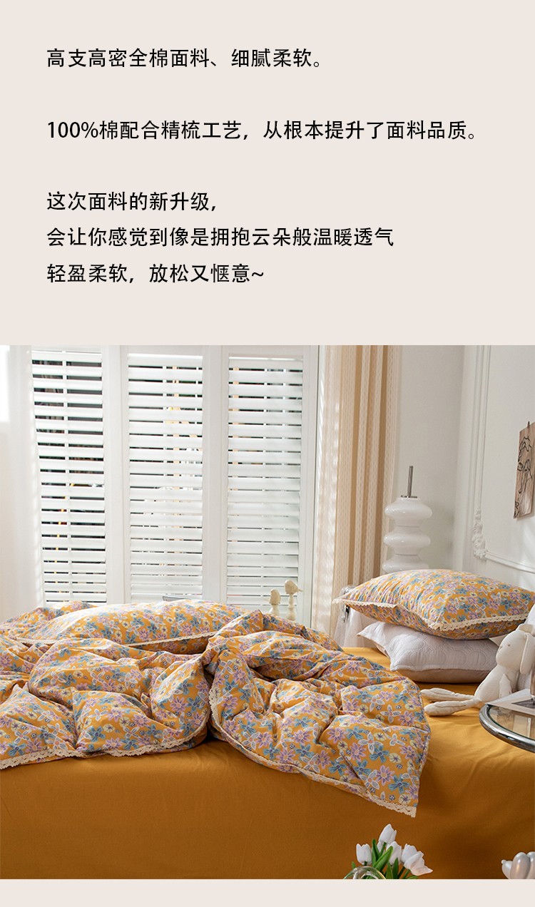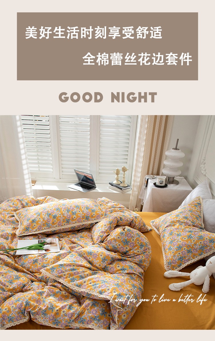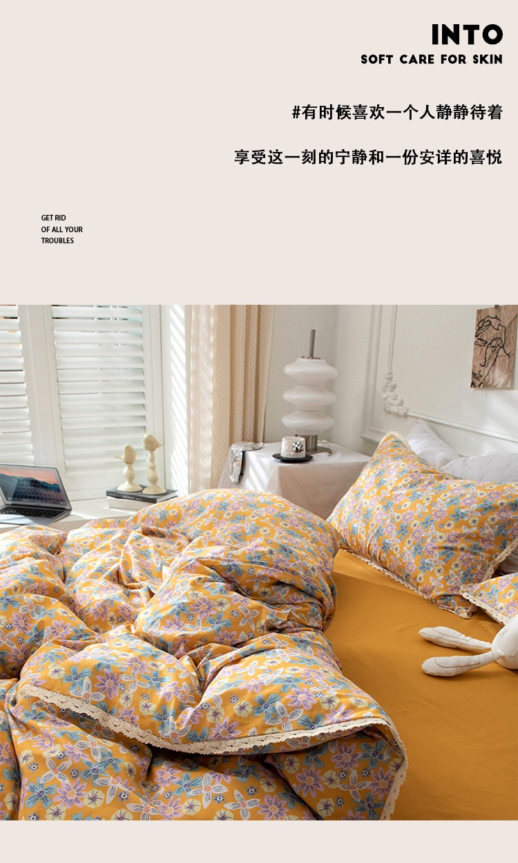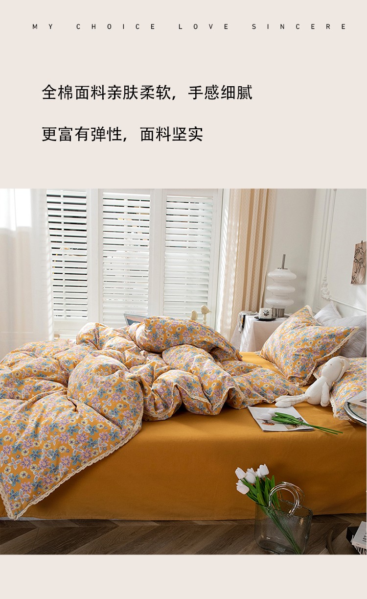 网客家纺 2024新款全棉水洗棉小碎花花边款系列四件套 四季予你