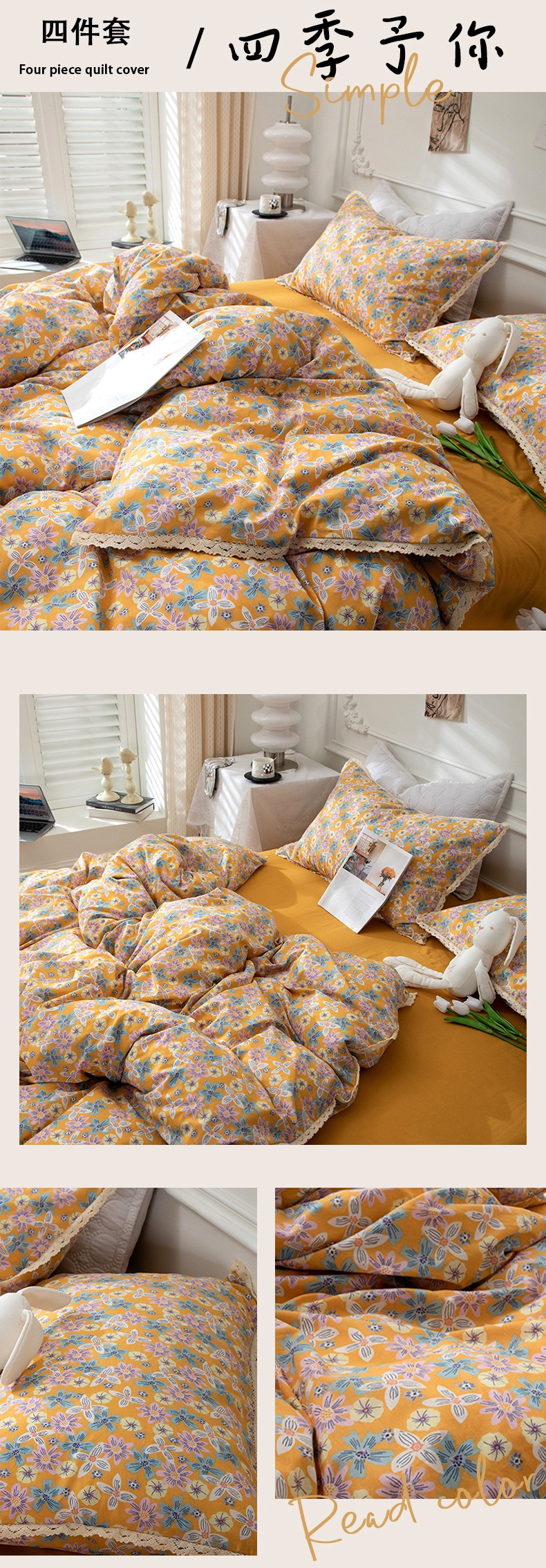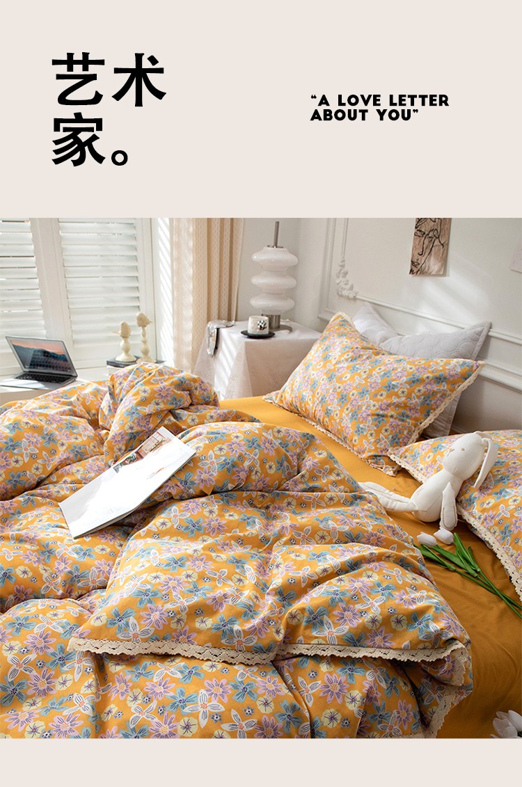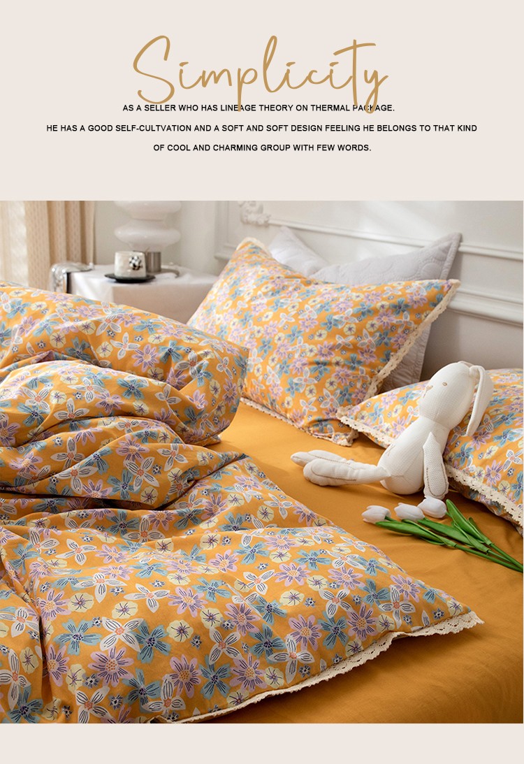 网客家纺 2024新款全棉水洗棉小碎花花边款系列四件套 四季予你