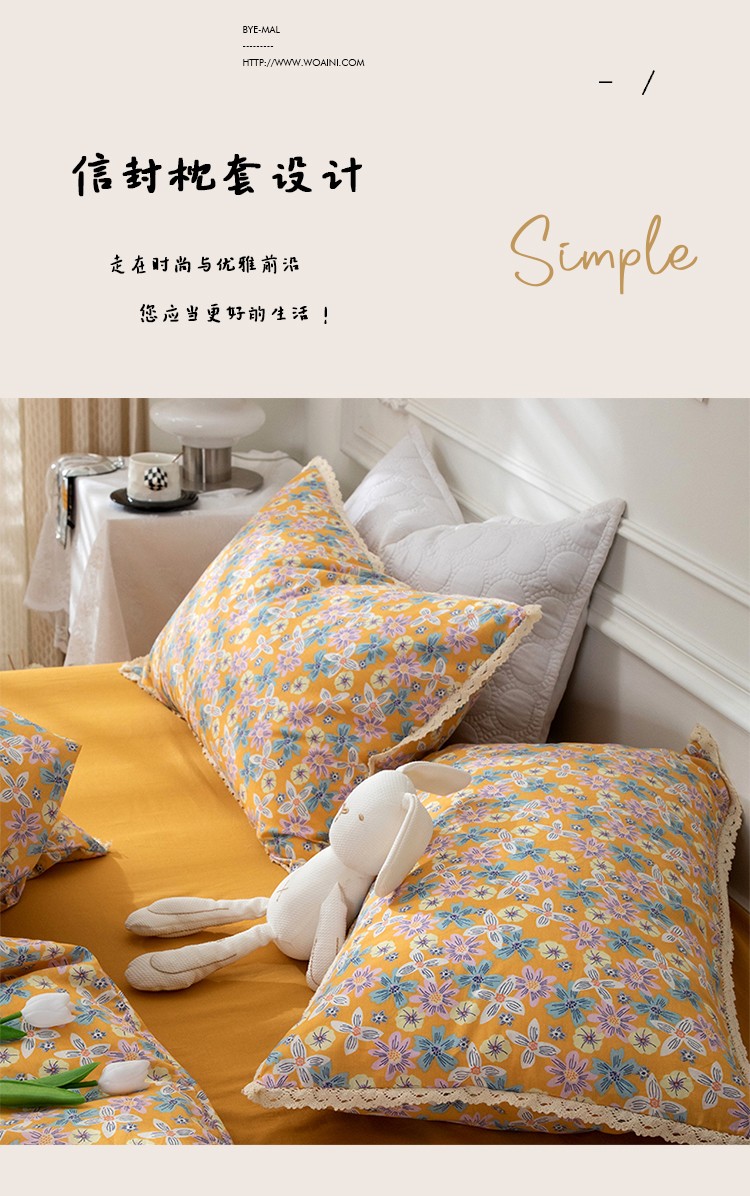 商品名称:网客家纺 2024新款全棉水洗棉小碎花花边款系列四件套 四季予你