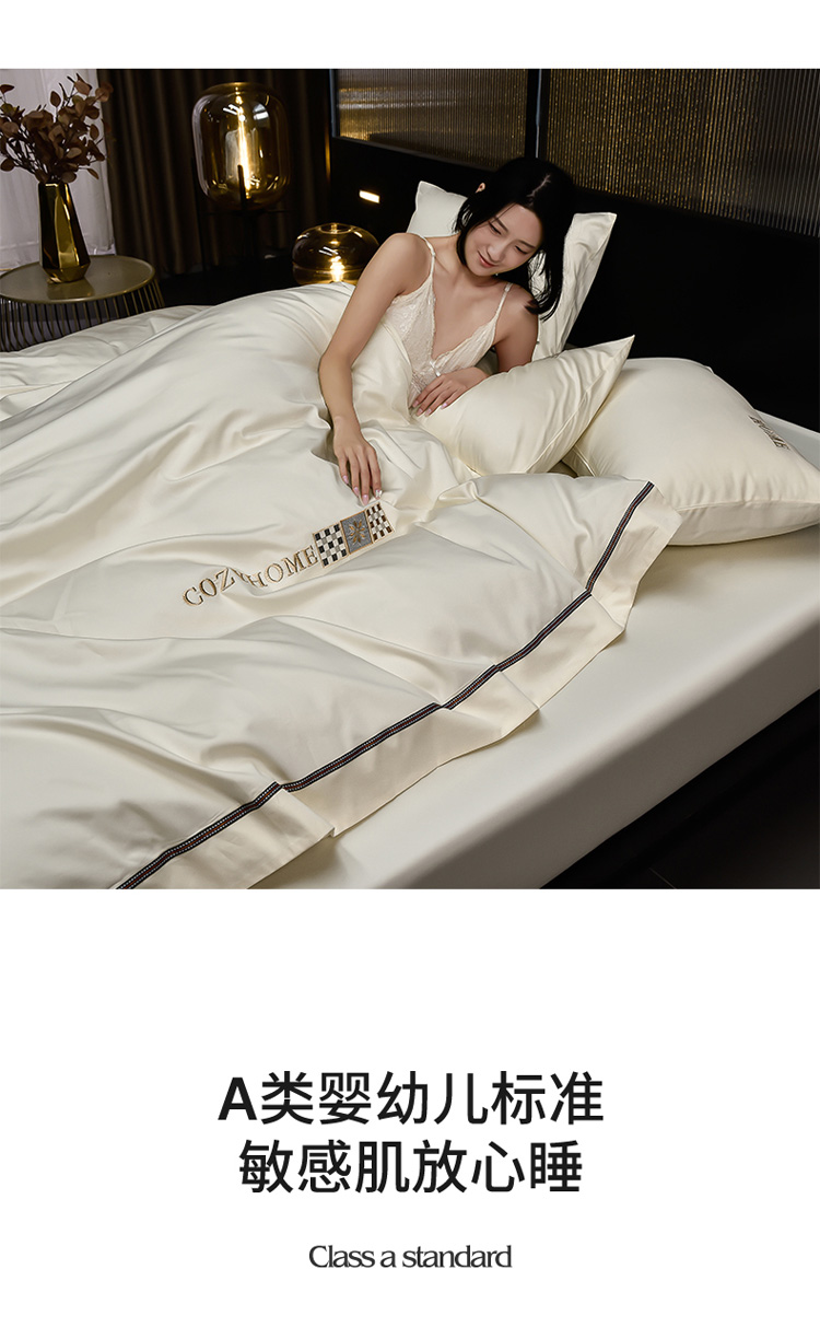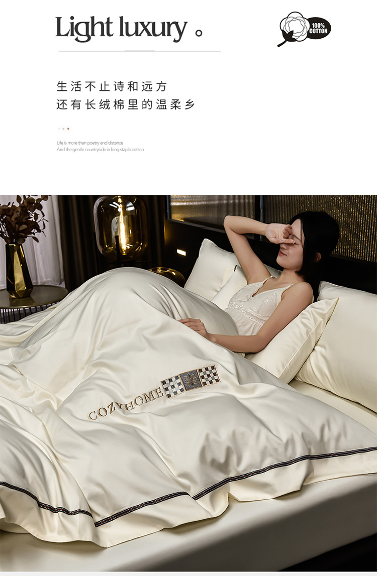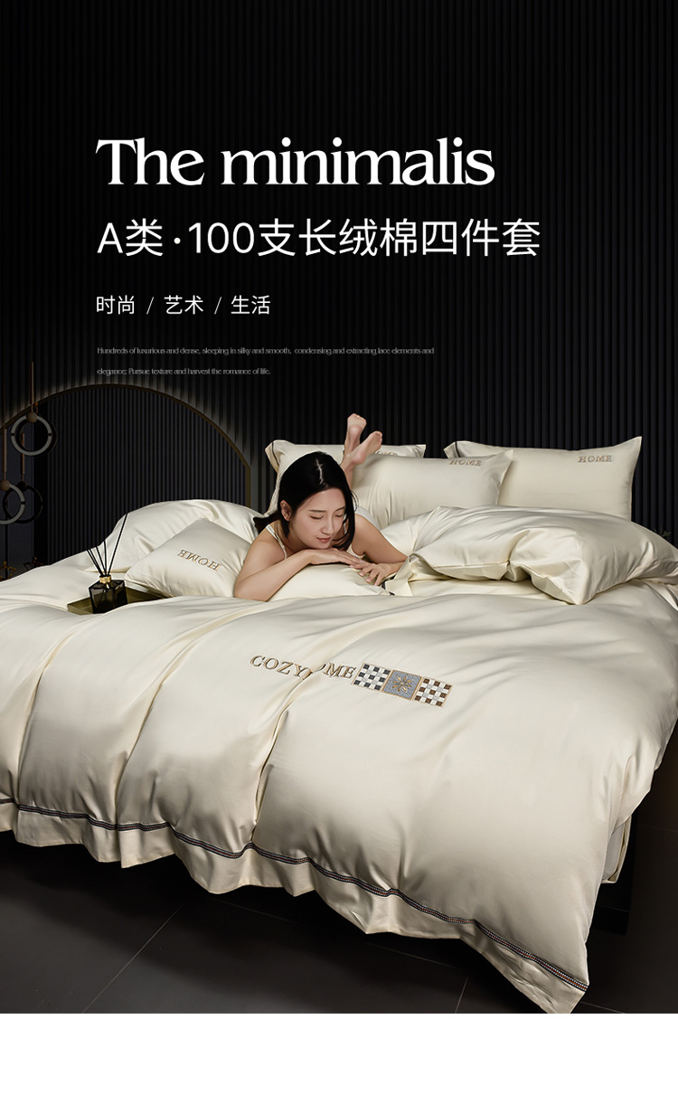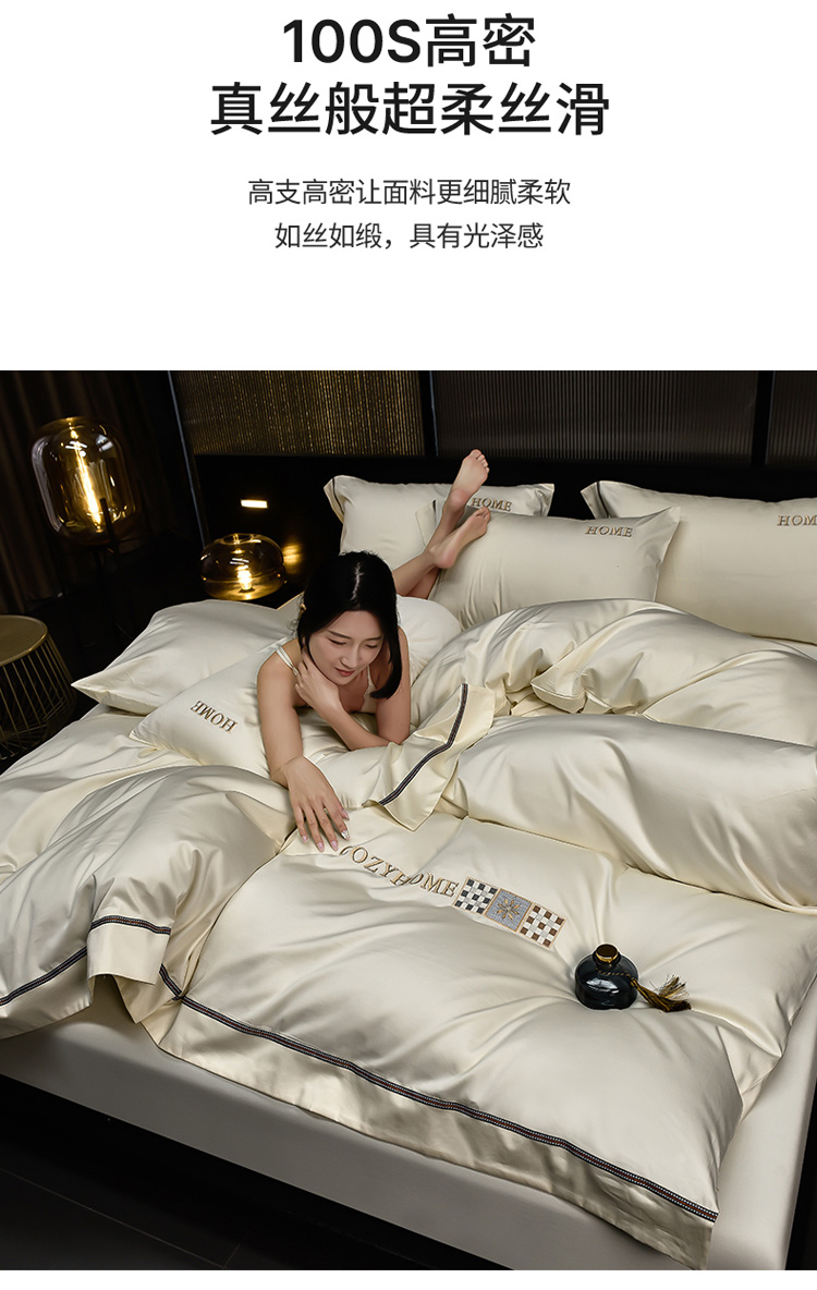 (总)瑞驰家纺 2025新款长绒棉绣花莱桉系列四件套,莱桉-贝壳白,莱桉-朵拉灰,莱桉-驼褐,莱桉-棕橙