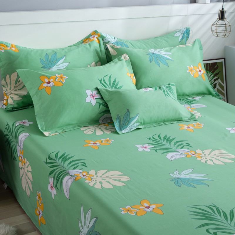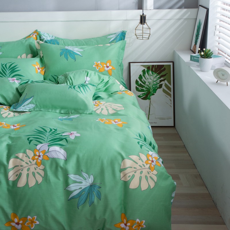 雨萝家纺 2022新款纯棉四件套全棉学生宿舍三件套 蔓香-绿