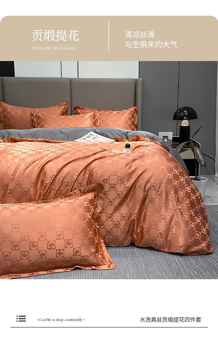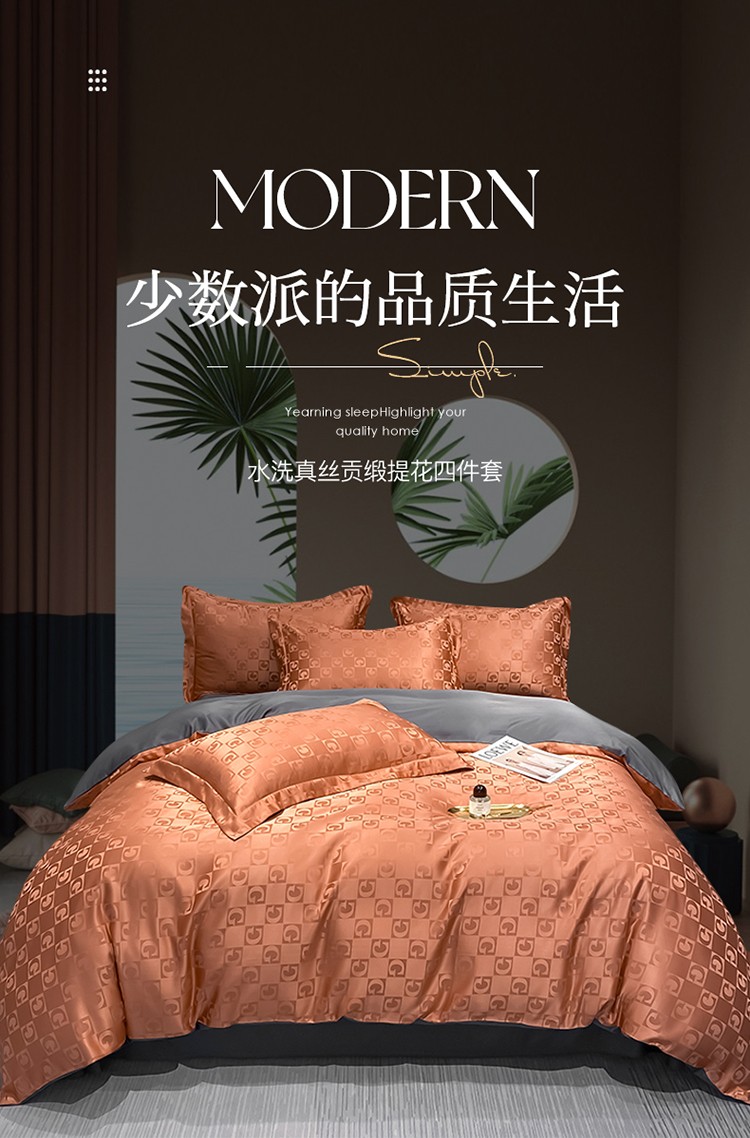 商品名称:遇见家居 2022新款水洗磨毛亲肤棉贡缎提花四件套柏林-焦糖