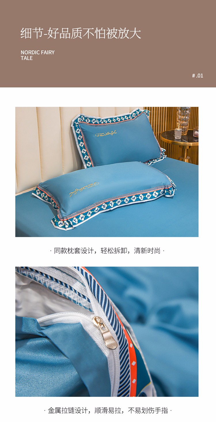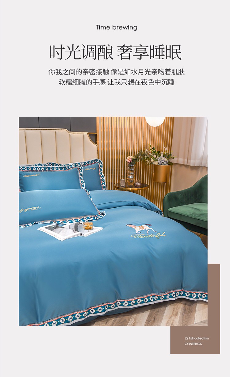 商品名称:2022宽边数码印花水洗真丝绣花四件套 轻奢刺绣冰丝天丝套件