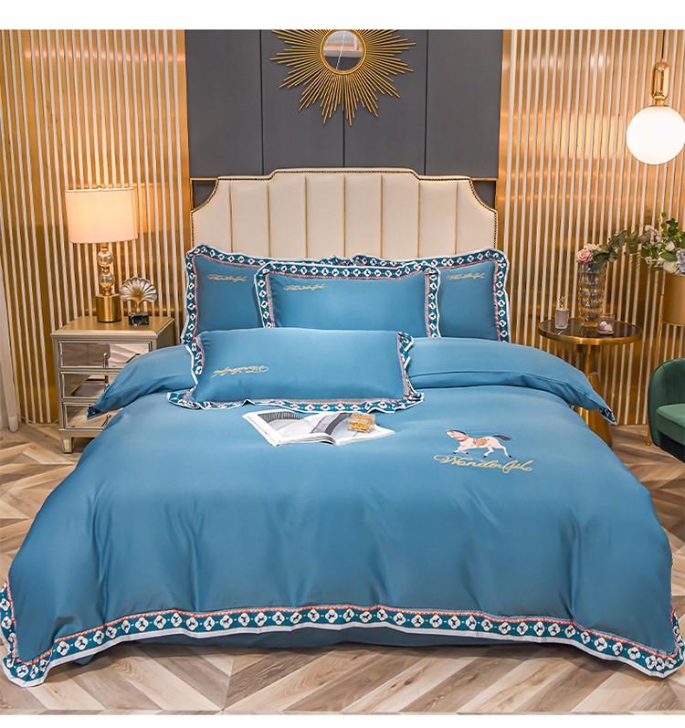2022宽边数码印花水洗真丝绣花四件套 轻奢刺绣冰丝天丝套件