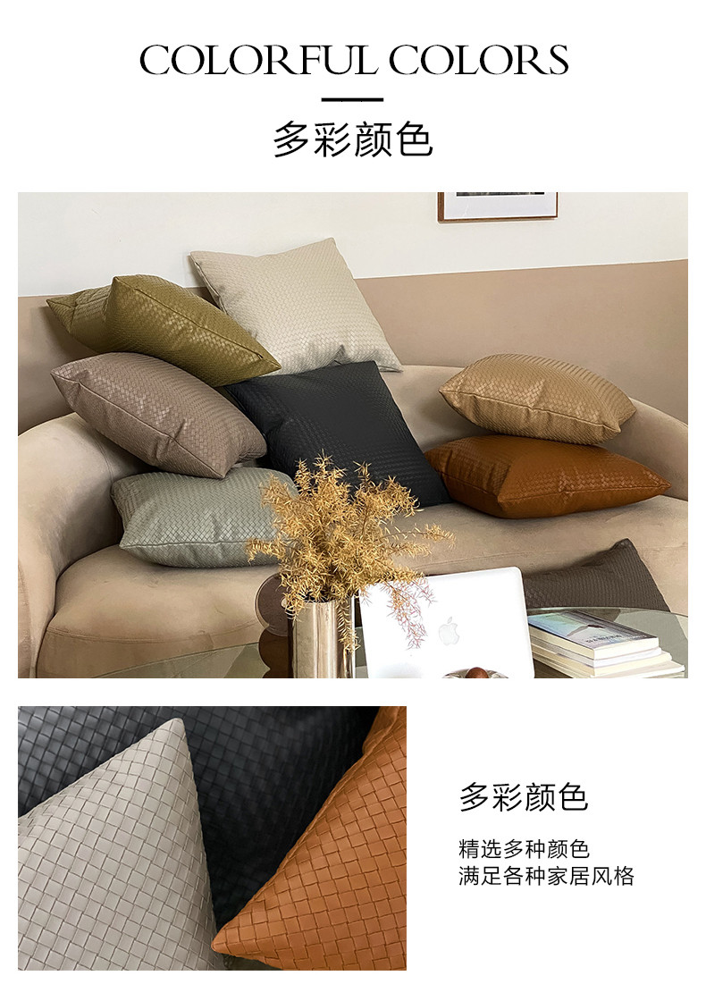 商品名称:美茉 2022新款编织纹皮革抱枕靠垫 卡其色