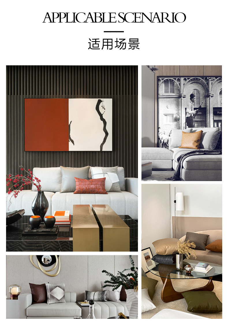 (总)美茉家居跨境电商爆款皮革帆布拼接抱枕黑白印花可拆洗靠垫,更甚,留白,有物,长物