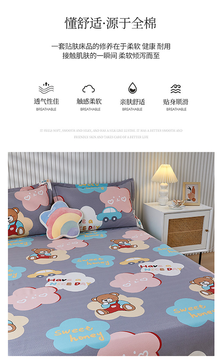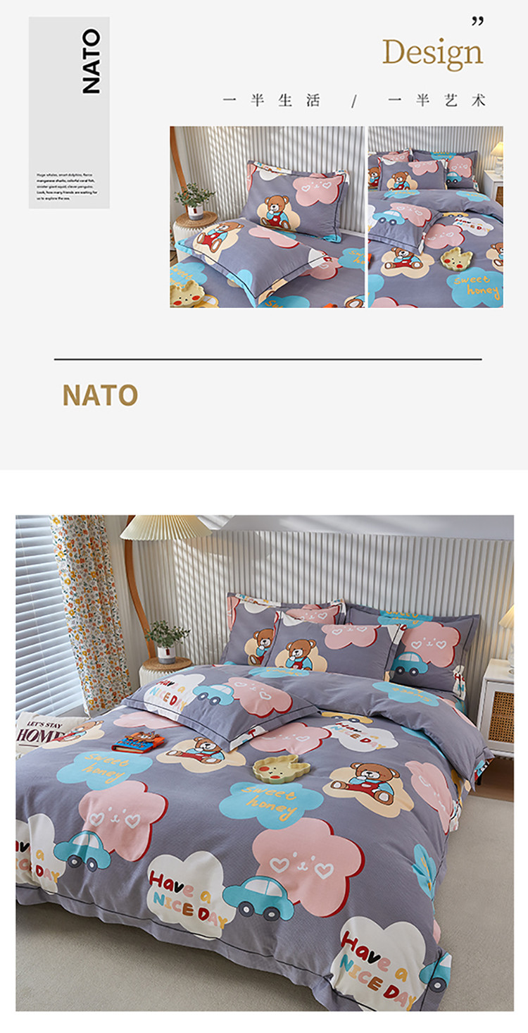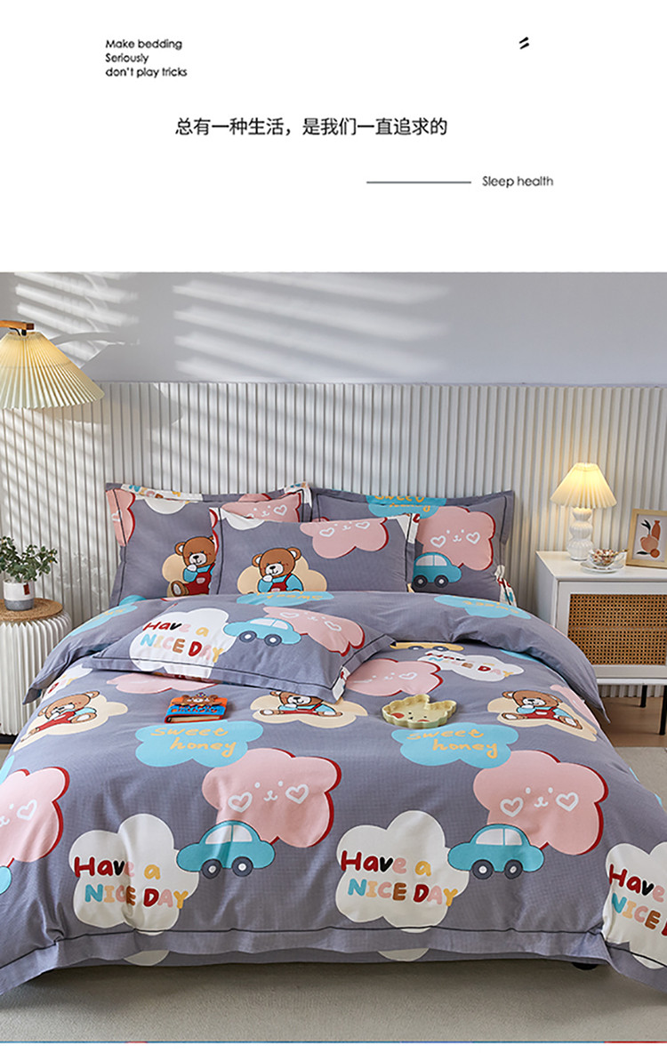 杜先生 2023新款全棉加厚磨毛系列四件套浪漫小熊-灰