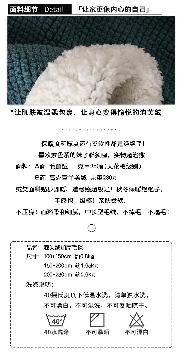 商品名称:网客家纺2024年新款泡芙绒加厚毛毯 海军蓝