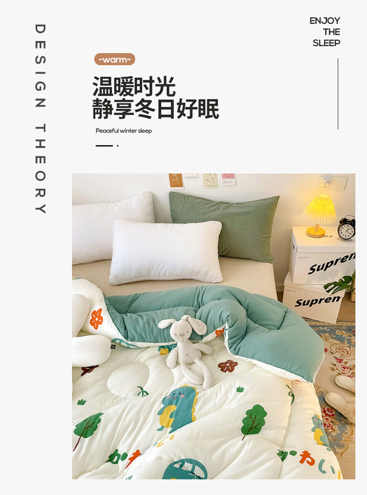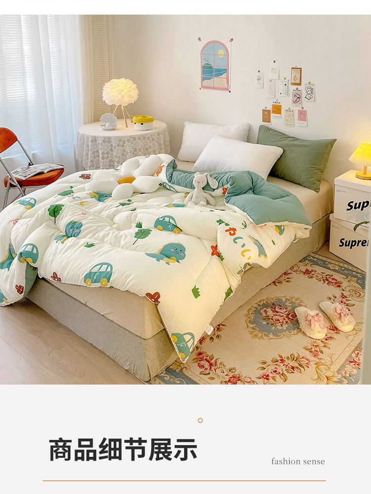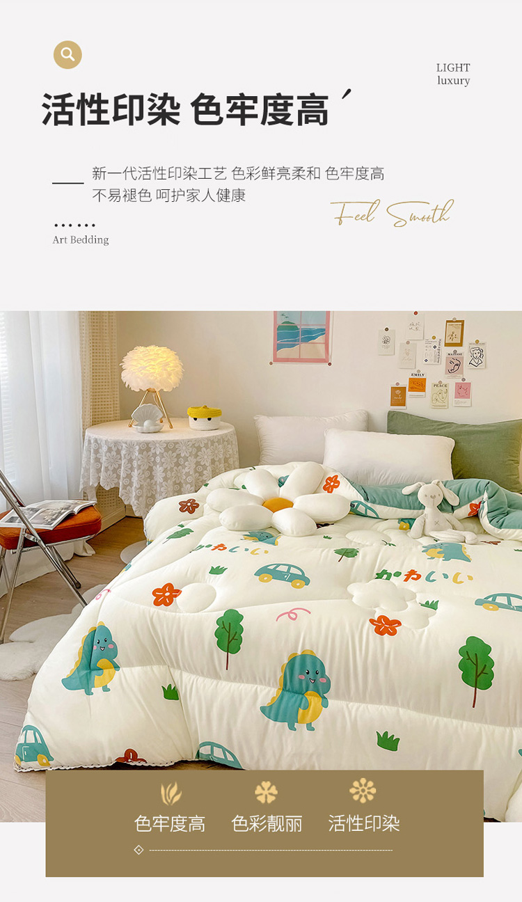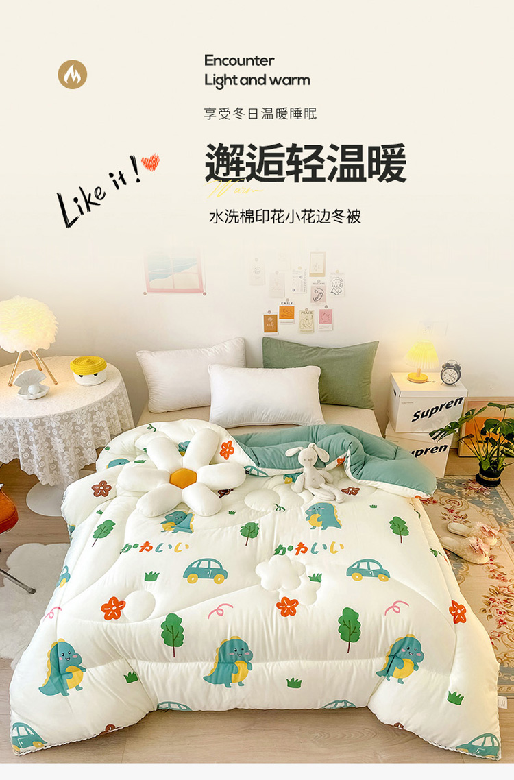 • 91家纺网 家纺一手货源 找家纺 2022新款直播爆款水洗棉印花小花边春秋被冬被 萌萌恐龙