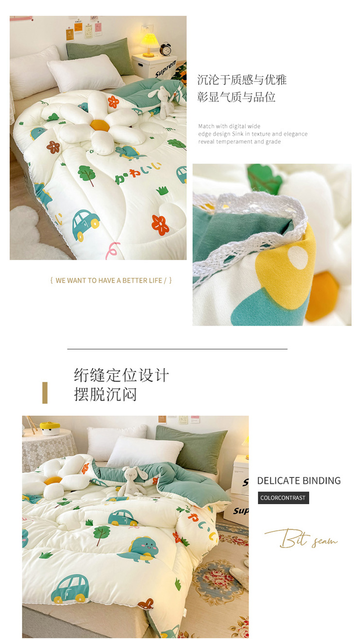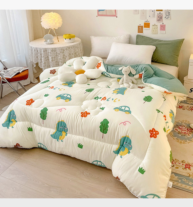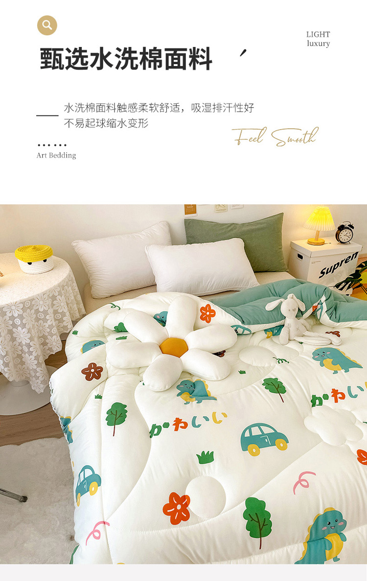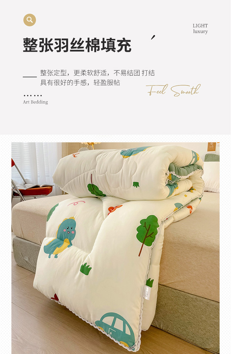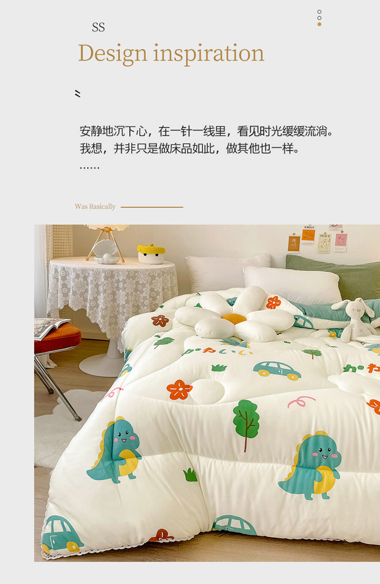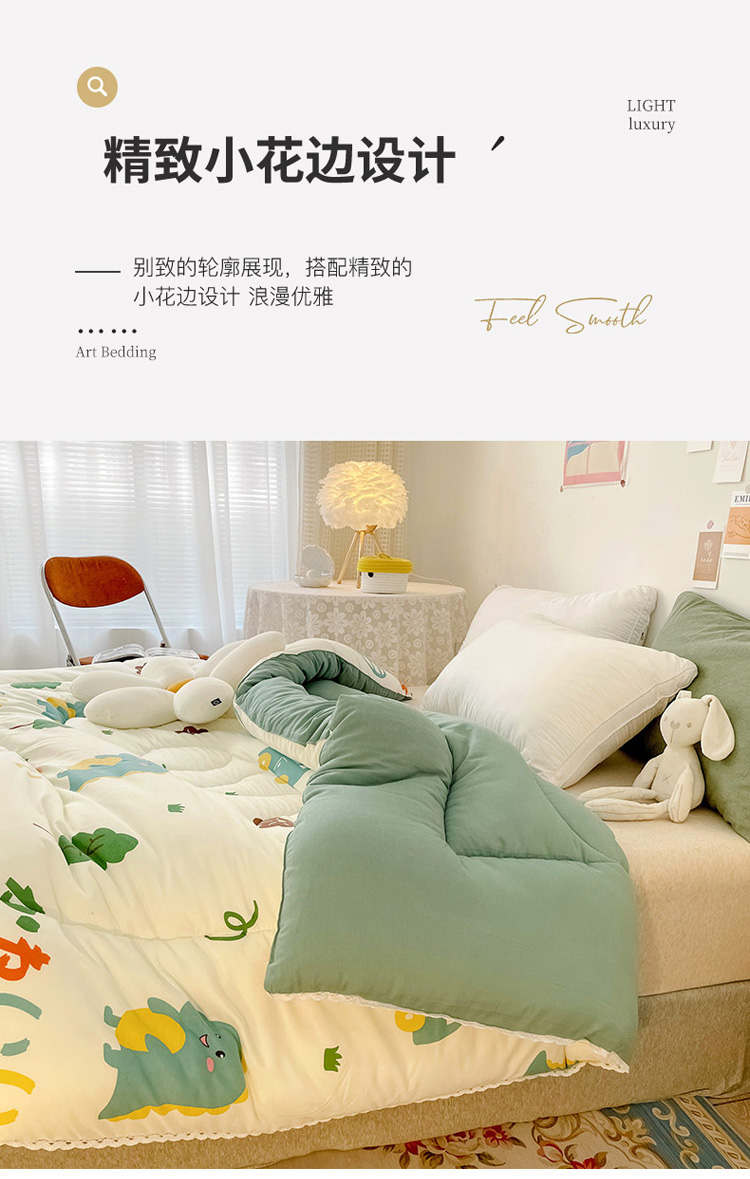 2022新款直播爆款水洗棉印花小花边春秋被冬被 萌萌恐龙