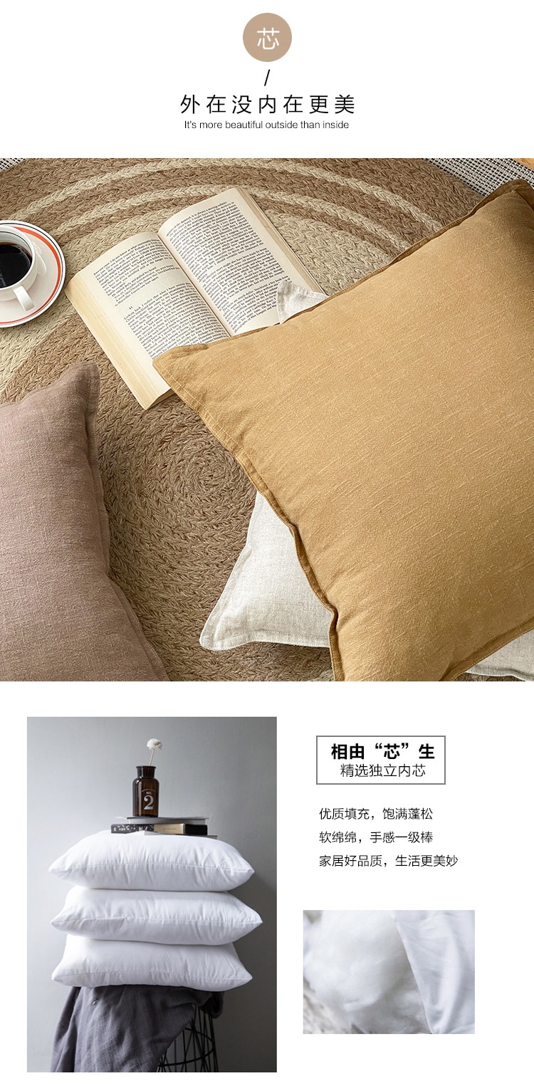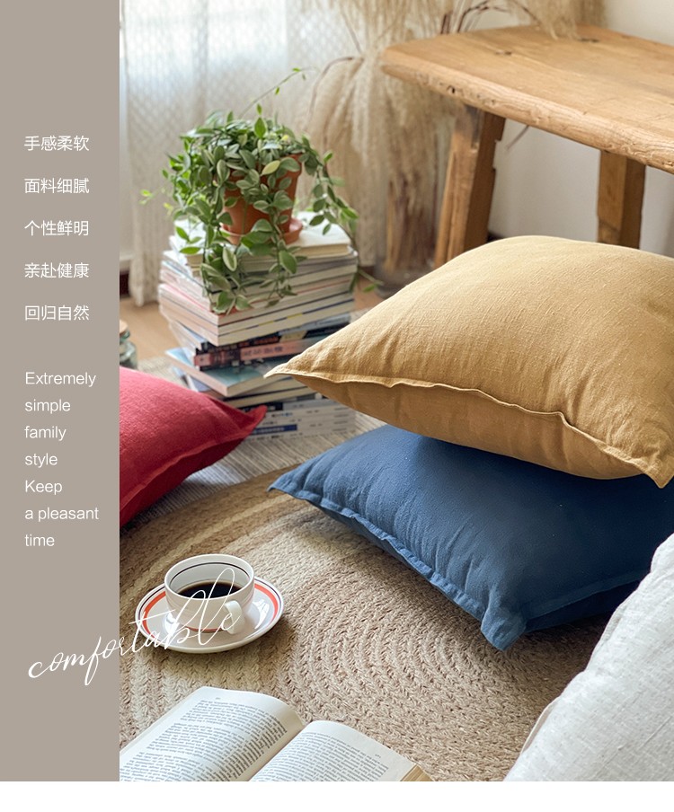 (总)美茉家居 2023新款棉麻双针抱枕,湖蓝,酒红,麻本,摩卡棕,土褐