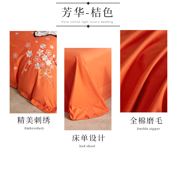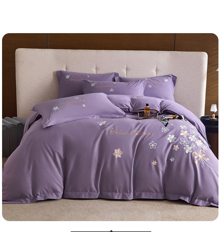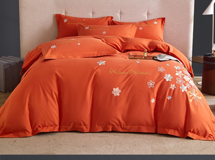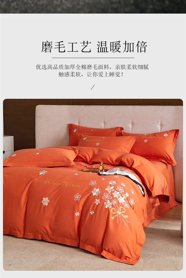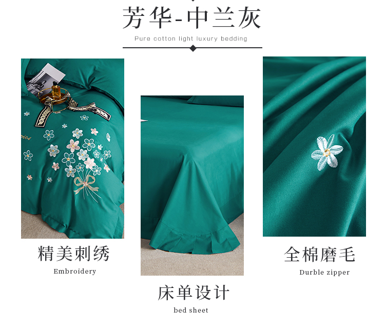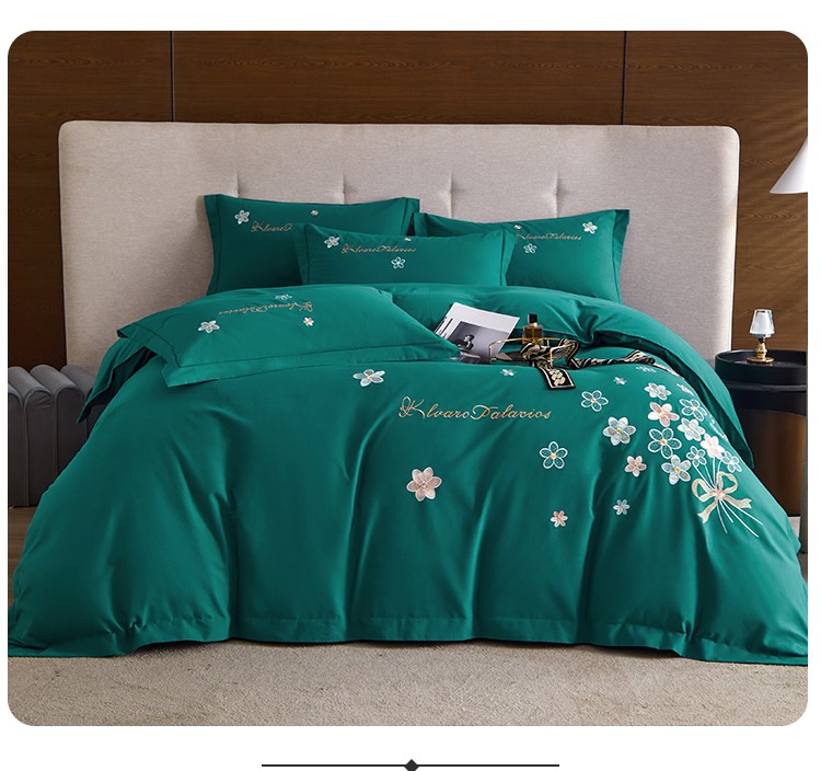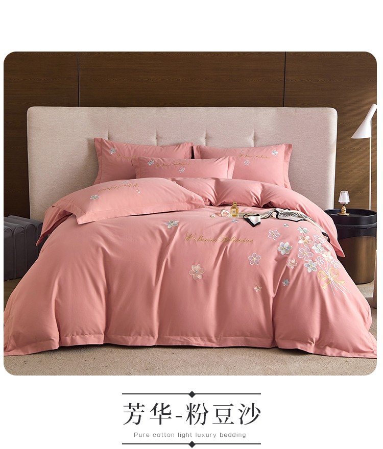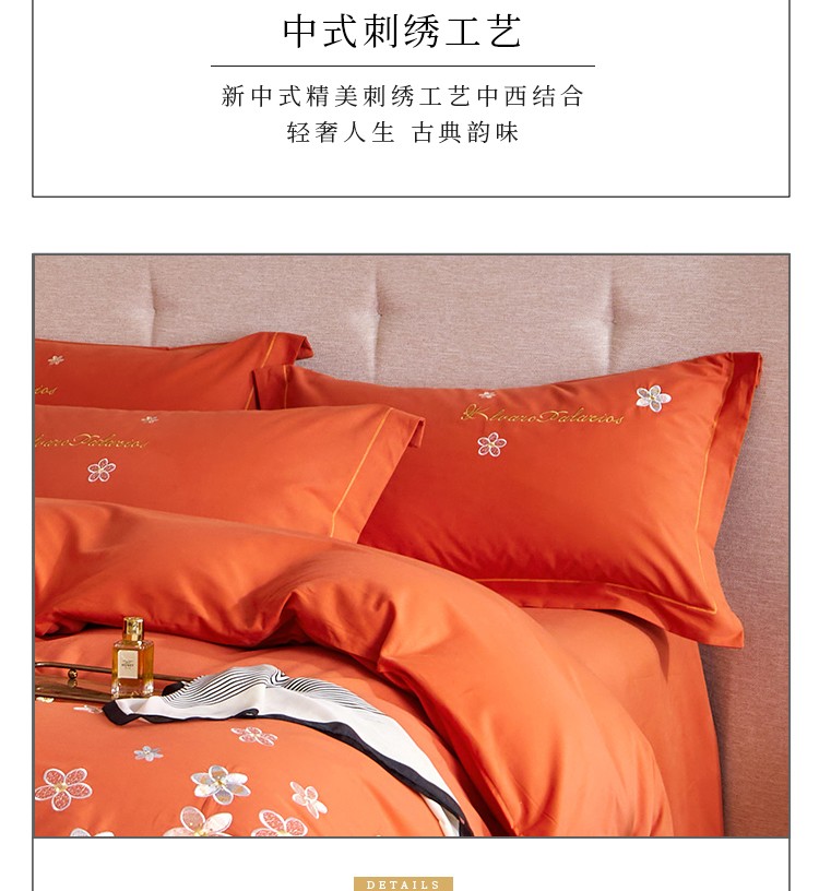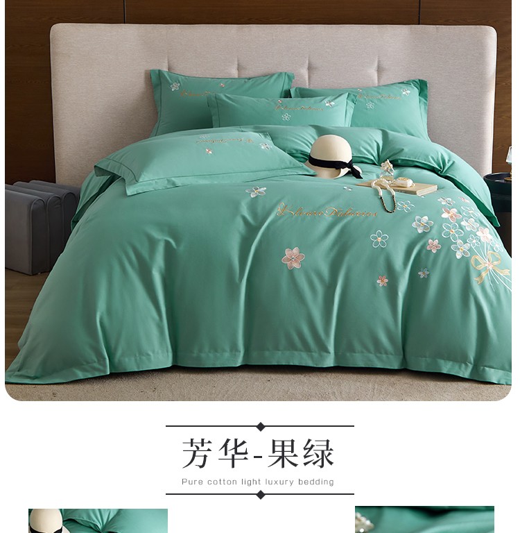 (总)惠居家 2023新款 13376全棉刺绣四件套 兰亭系列,牛果绿,豆沙,高级灰,桔色,森林绿,天空蓝,温馨紫