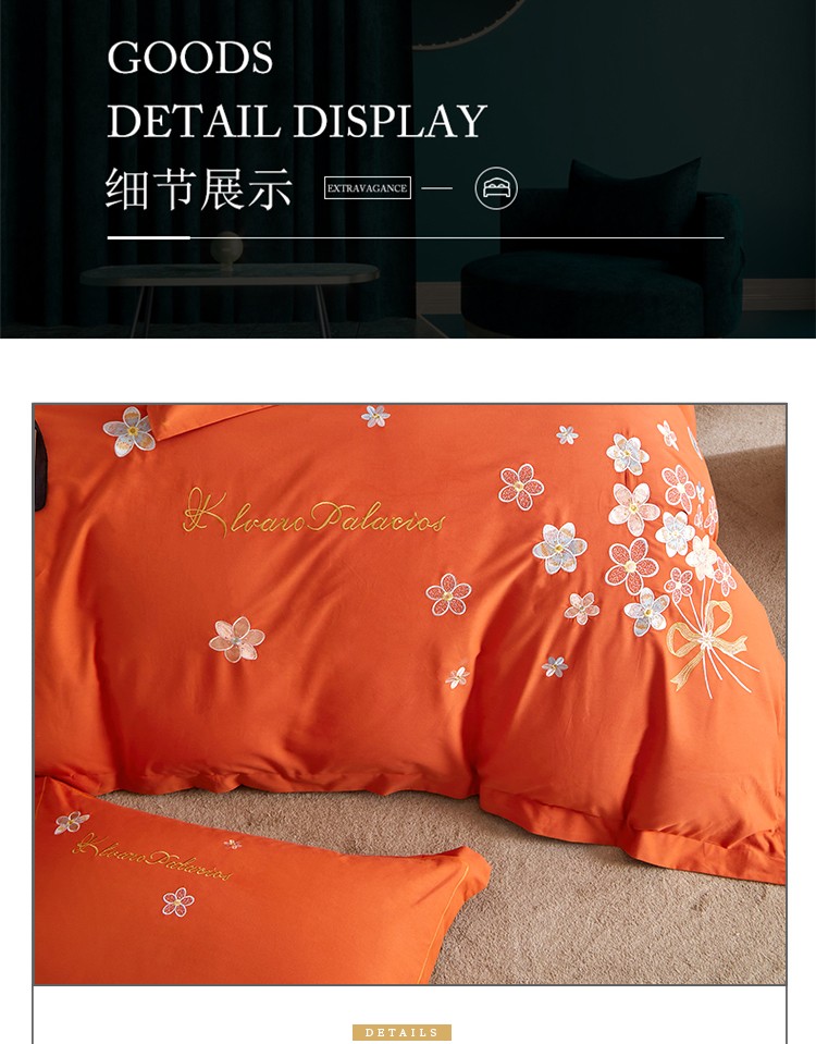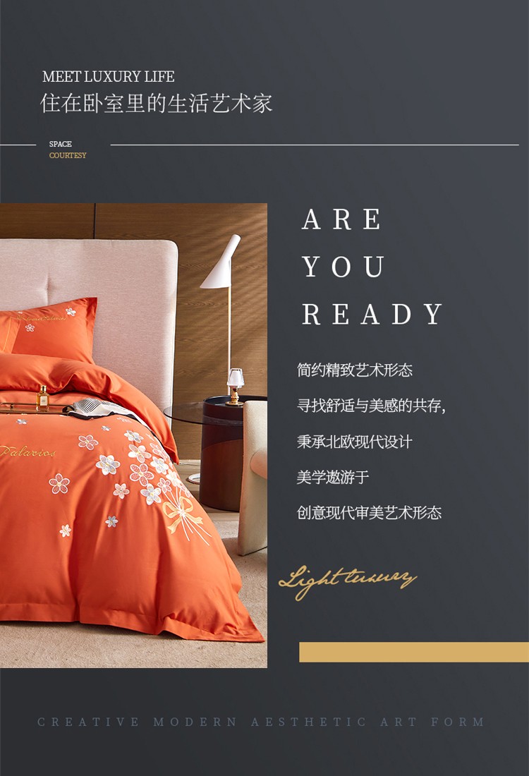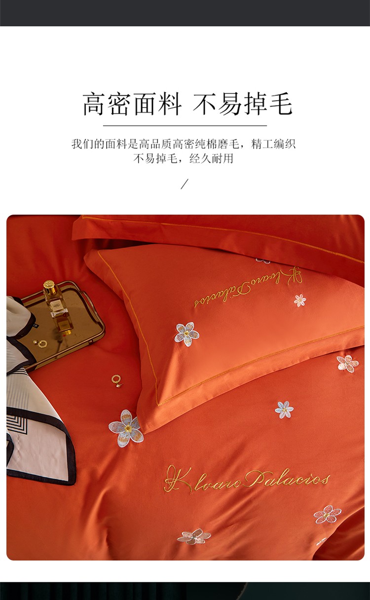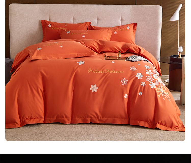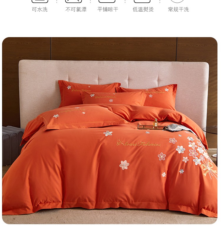 (总)惠居家 2023新款 120支长绒棉利亚款四件套,宝石蓝,橙色,豆沙,高级灰,卡宴蓝,温馨紫