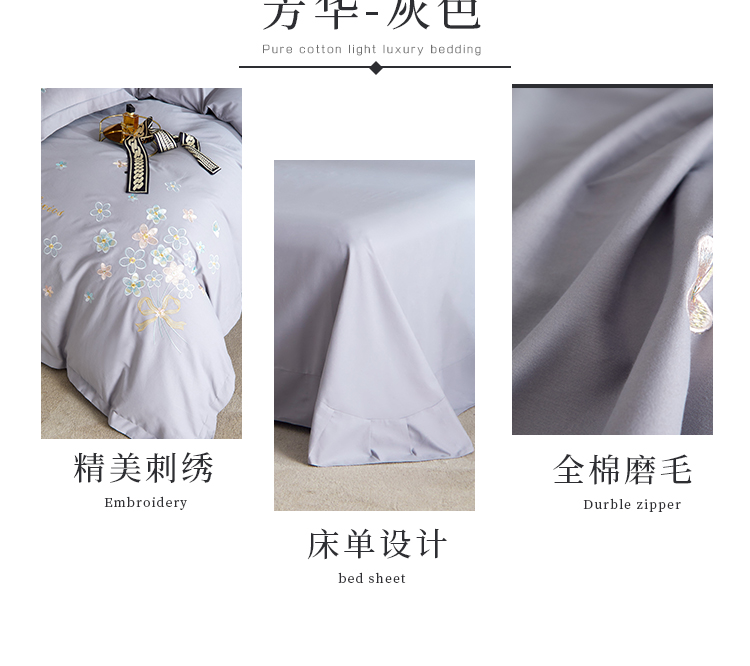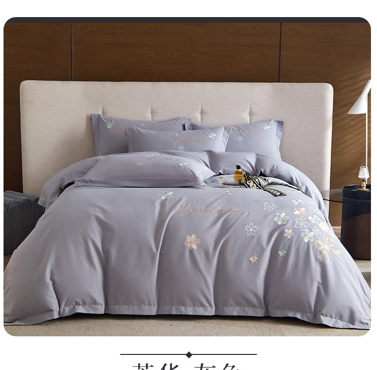 (总)惠居家 2023新款120支长绒棉刺绣四件套希曼系列,薄荷绿,宾利兰,豆沙,灰色