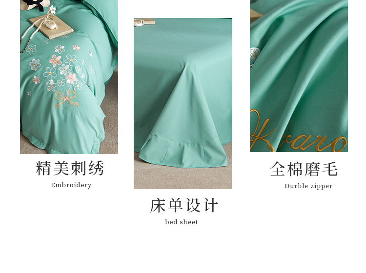 (总)惠居家 2023新款浮雕全棉长绒棉磨毛刺绣四件套-诺曼,诺曼(绿),诺曼(香槟色),诺曼(粉玉),轻羽(粉玉),轻羽(浅绿)
