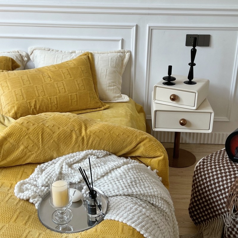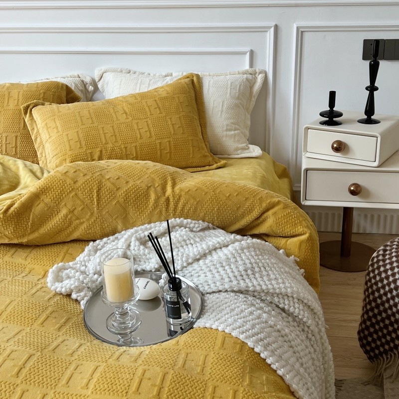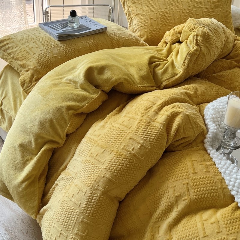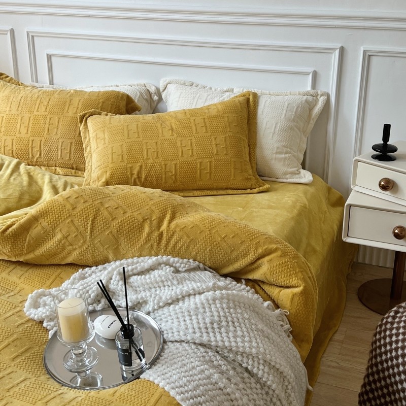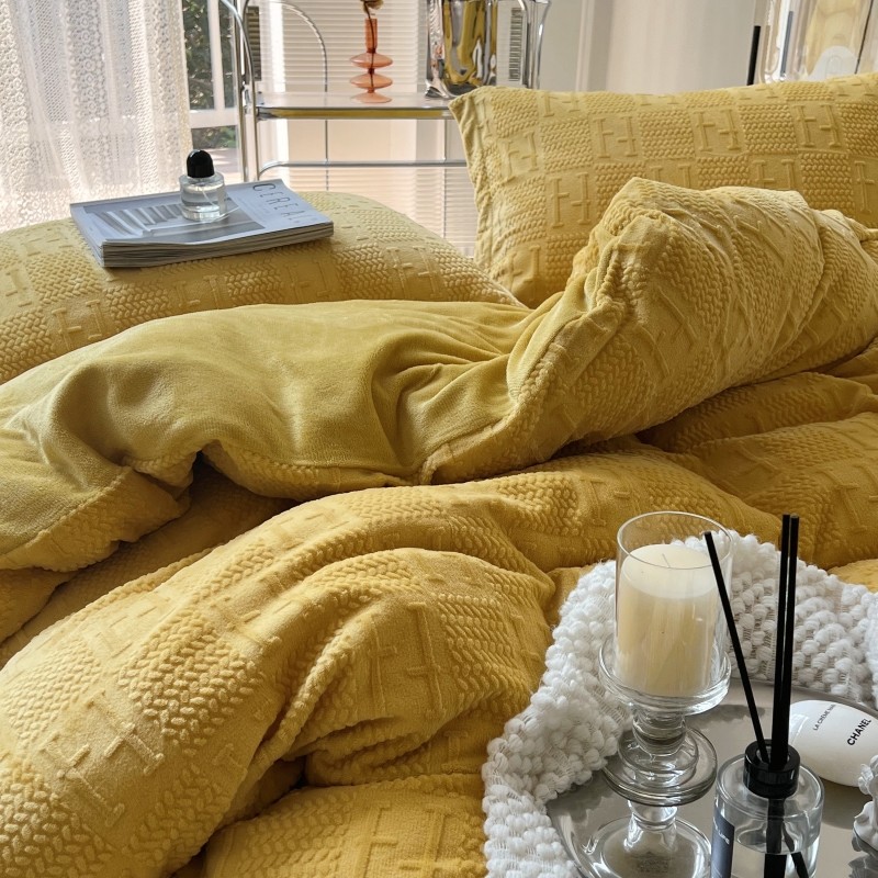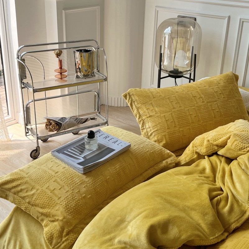 安莱生活 2022新款牛奶绒雕花210克重比弗利系列 琥珀黄