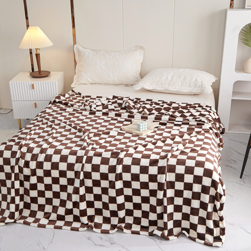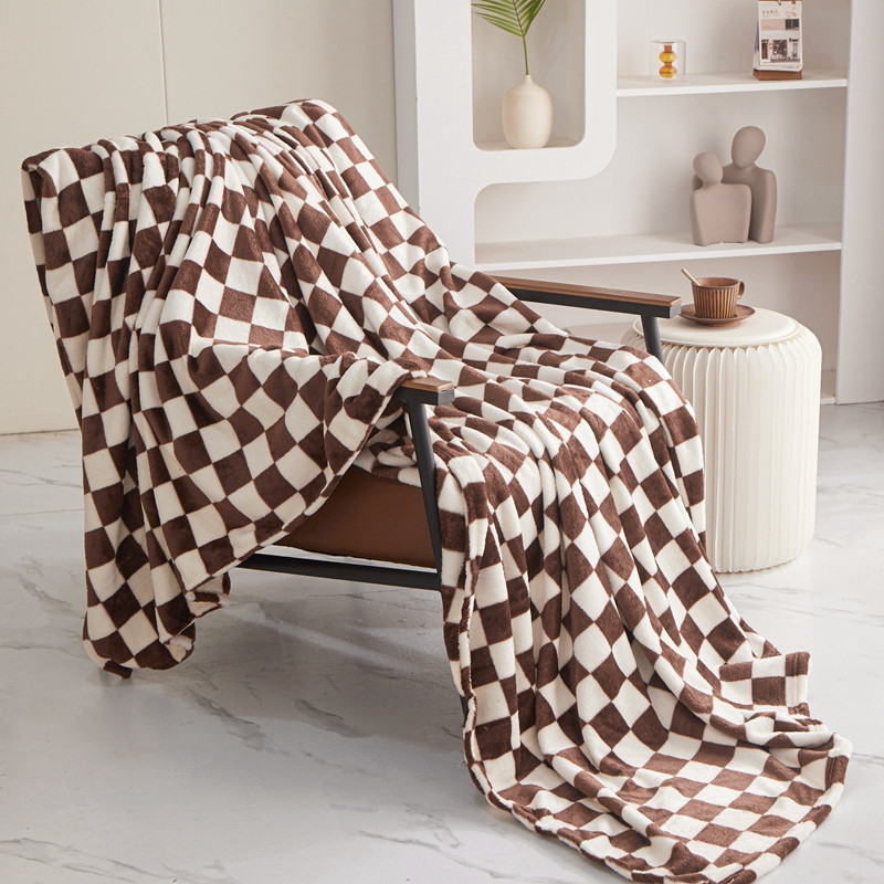 商品名称:新丽佳2022新款法兰绒棋盘格毛毯 咖啡格