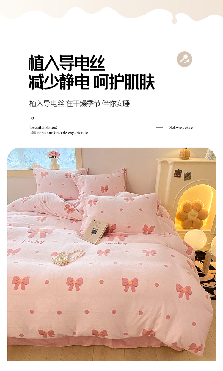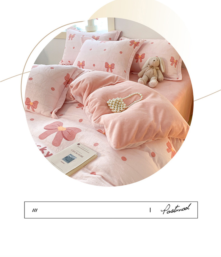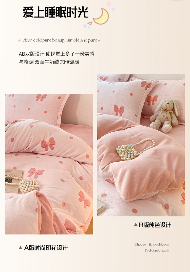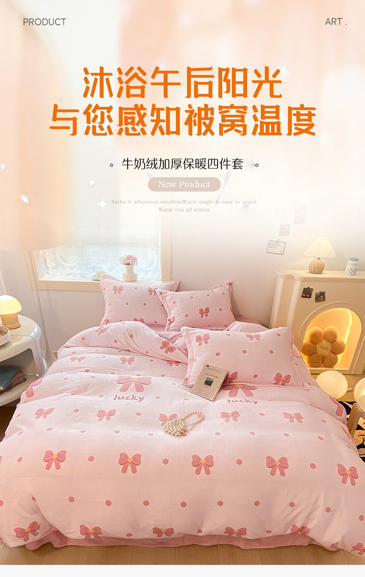 商品名称:沐慕 2022新款牛奶绒四件套 幸运蝴蝶结