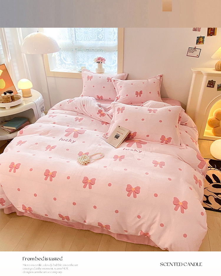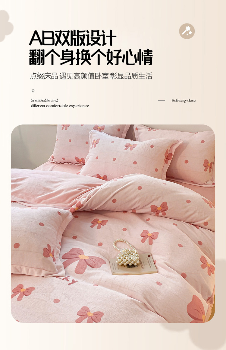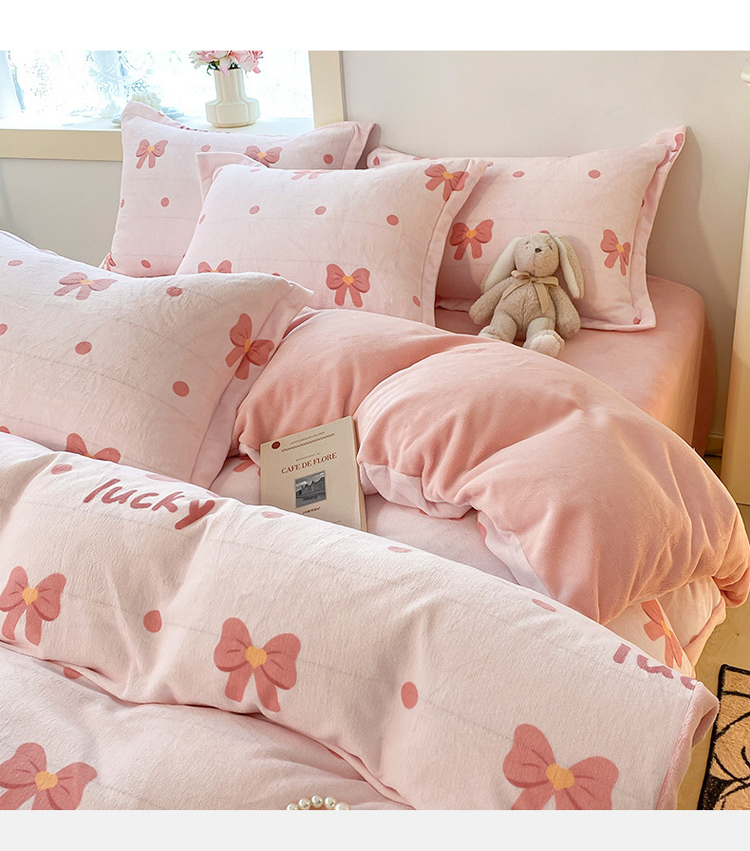 沐慕 2022新款牛奶绒四件套 幸运蝴蝶结