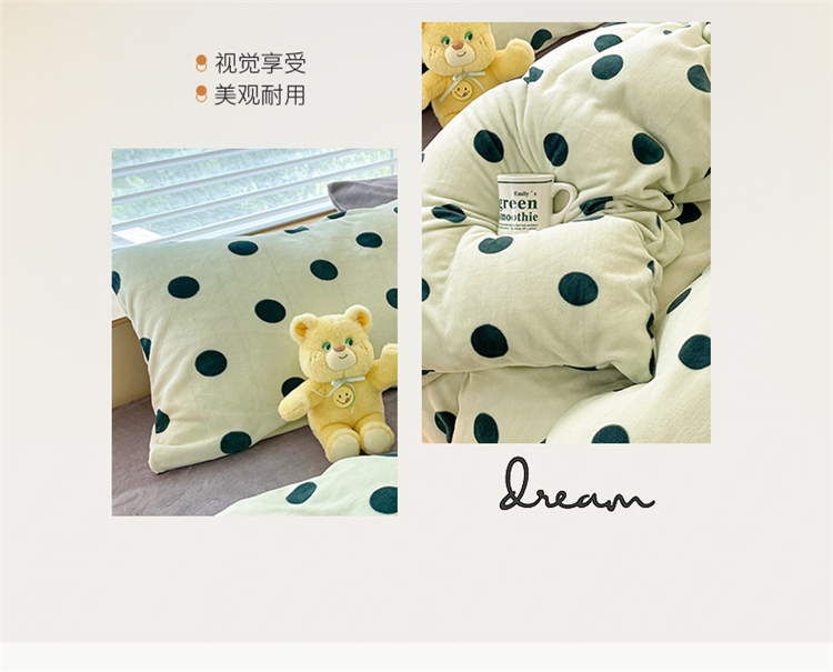 商品名称:桃子 新款ins奶油仙女波波加厚牛奶绒系列四件套 仙女波波-奶绿