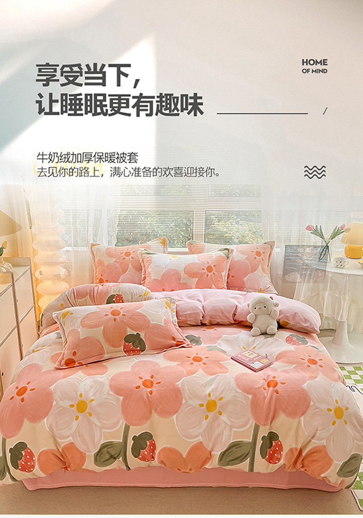商品名称:慕尚 2022新款牛奶绒保暖单被套 花蕾