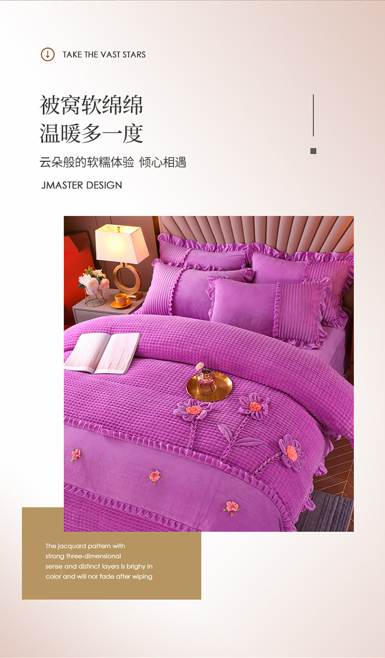 (总)兴美佳家纺 2024新款水晶绒全加棉床盖四件套-冬之恋,冬之恋-粉玉,冬之恋-豆沙,冬之恋-酒红,冬之恋-绿色,冬之恋-米黄,冬之恋-紫色,冬之恋-橘色