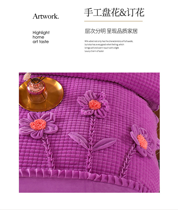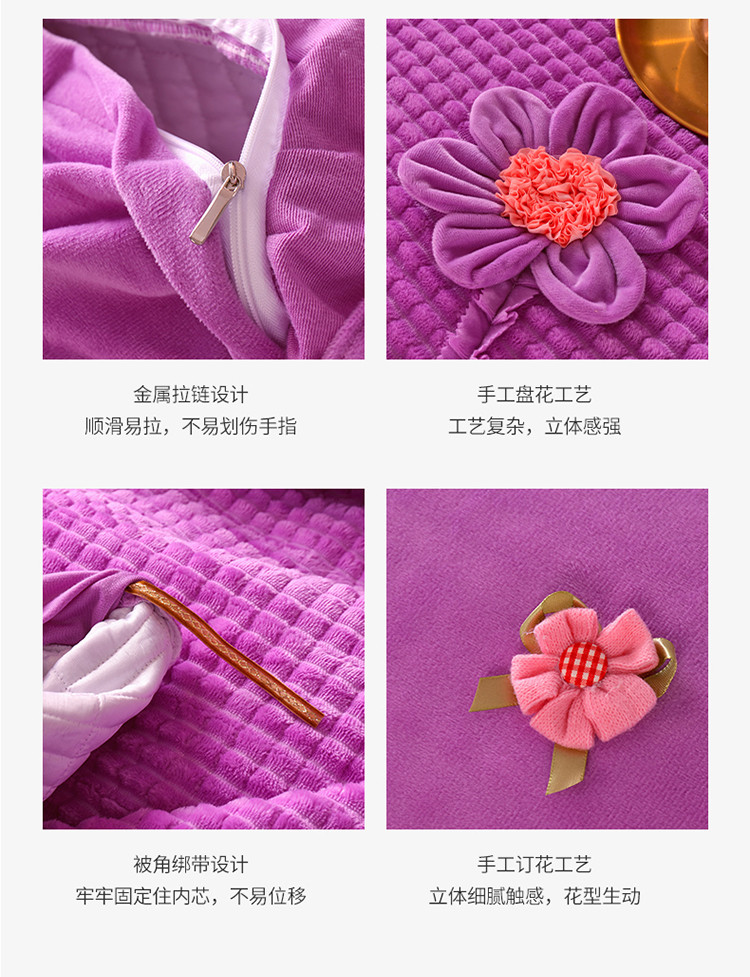商品名称:兴美佳 魔法绒手工盘花四件套-三花争艳 雪青