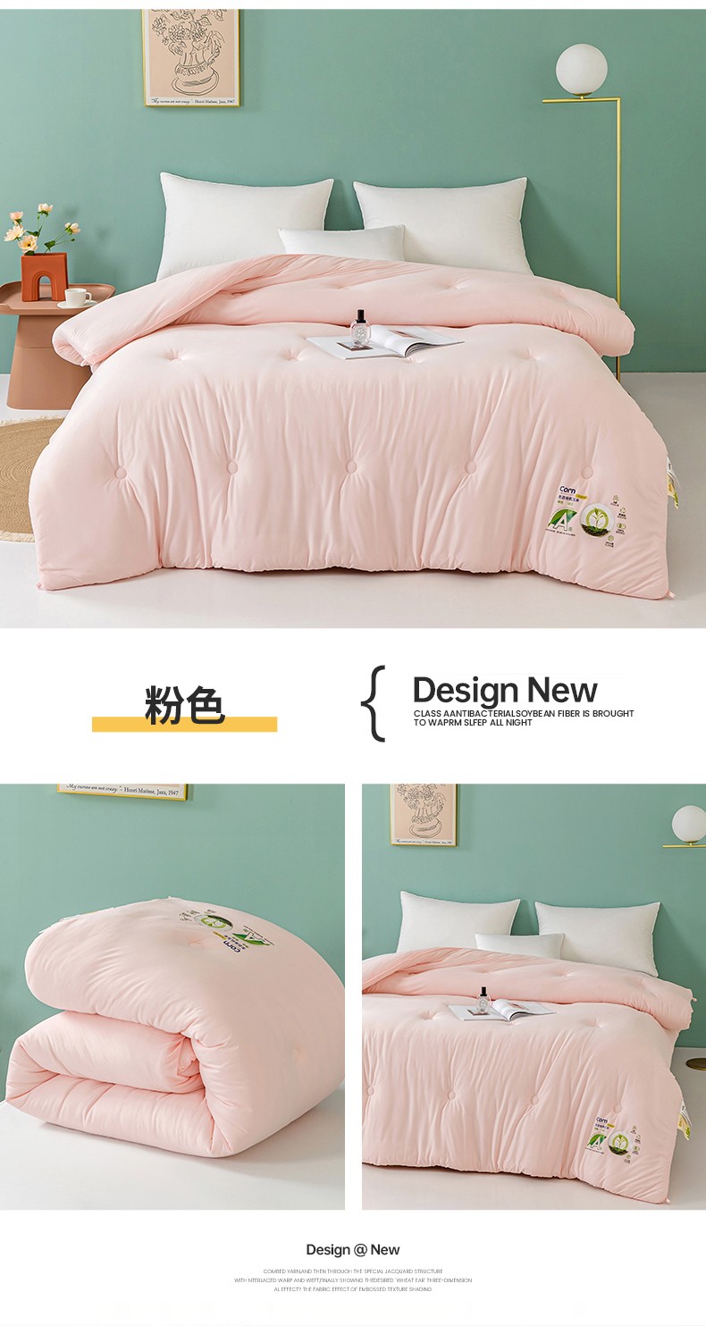 • 91家纺网 家纺一手货源 找家纺 亚龙 2023新款软糯大豆玉米被春秋被冬被 粉色