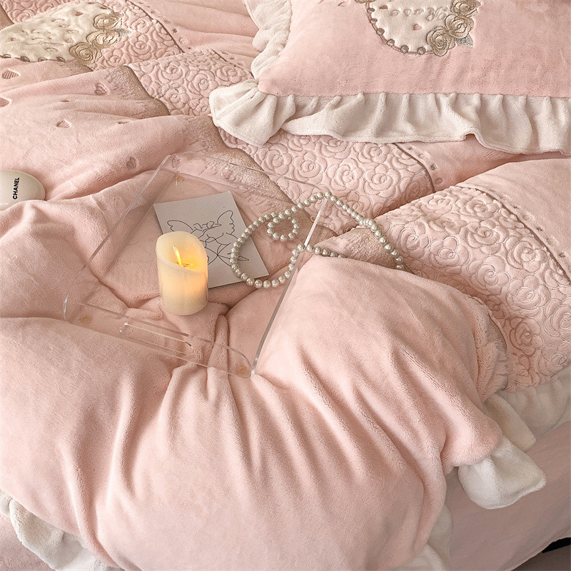 馨蕊 2022秋冬新款轻奢煦暖绒Rose系列四件套 Rose-初夏粉