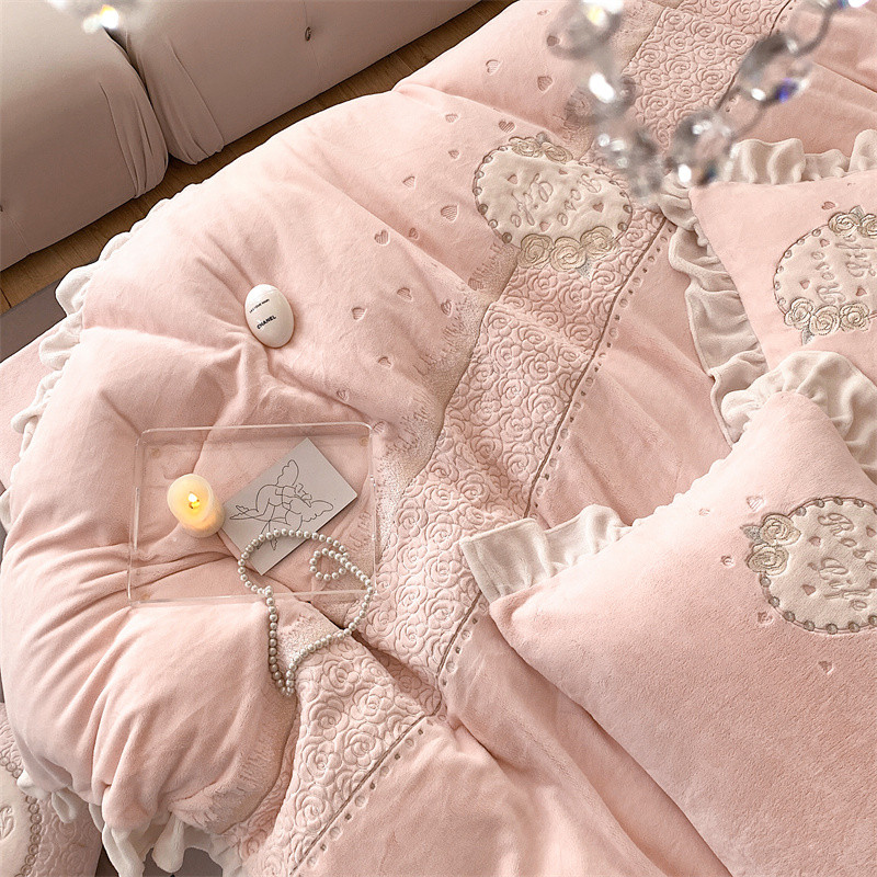 商品名称:馨蕊 2022秋冬新款轻奢煦暖绒Rose系列四件套 Rose-初夏粉