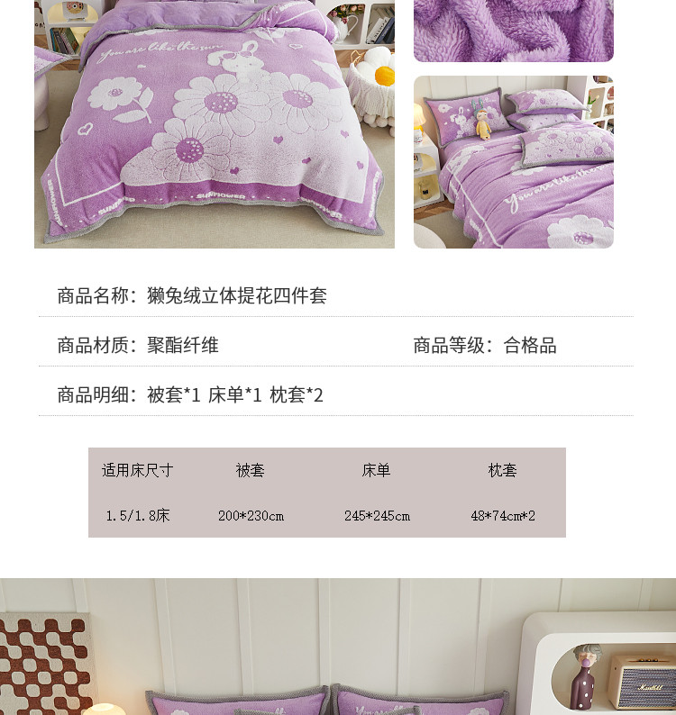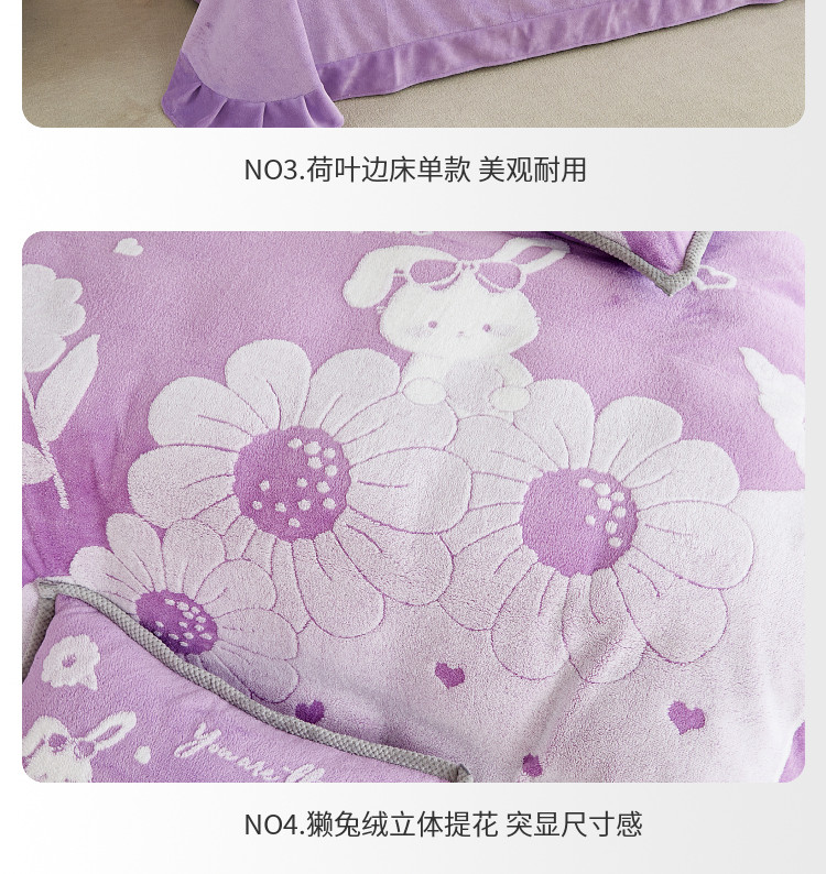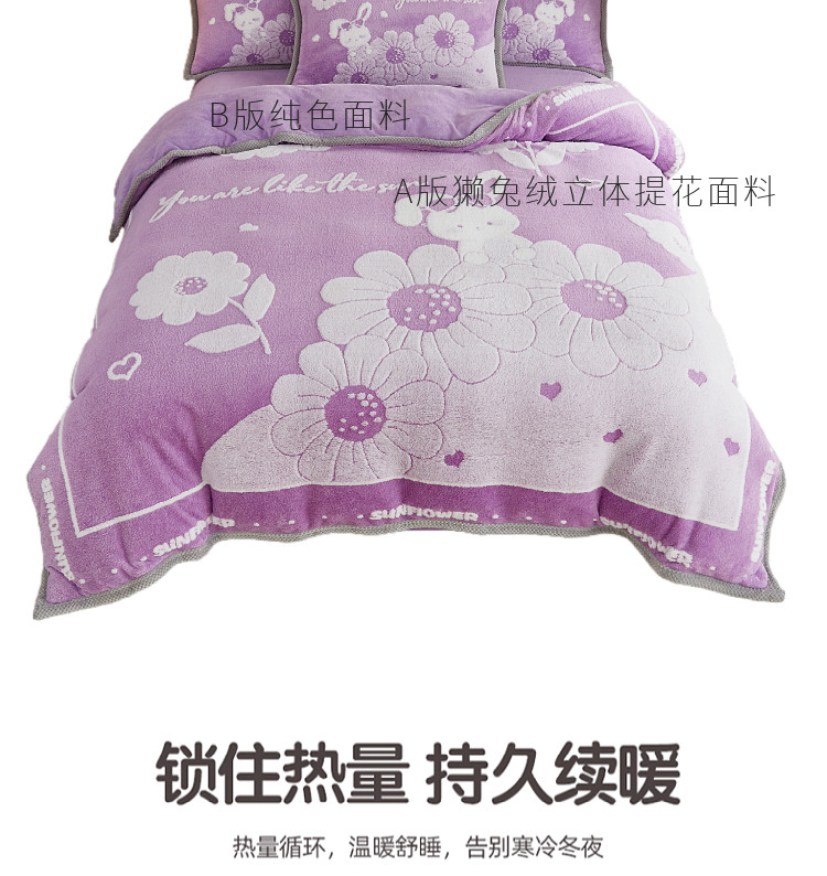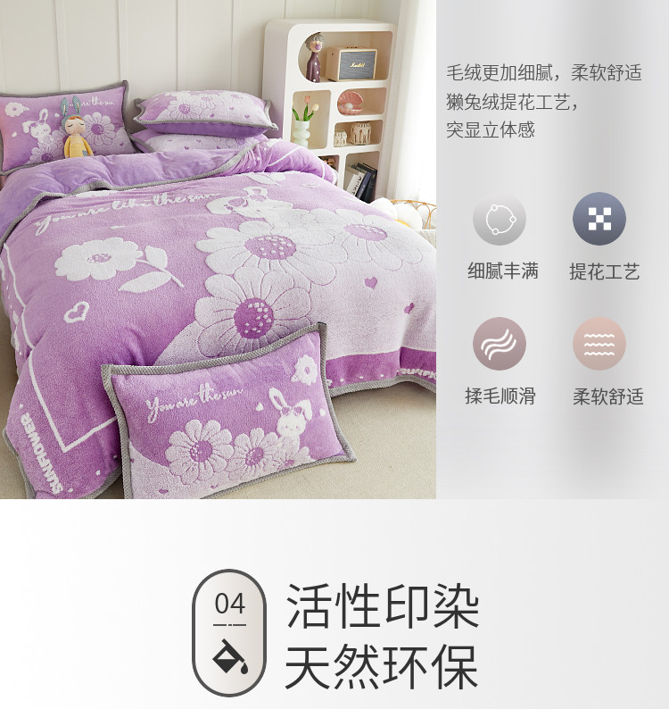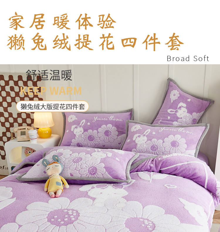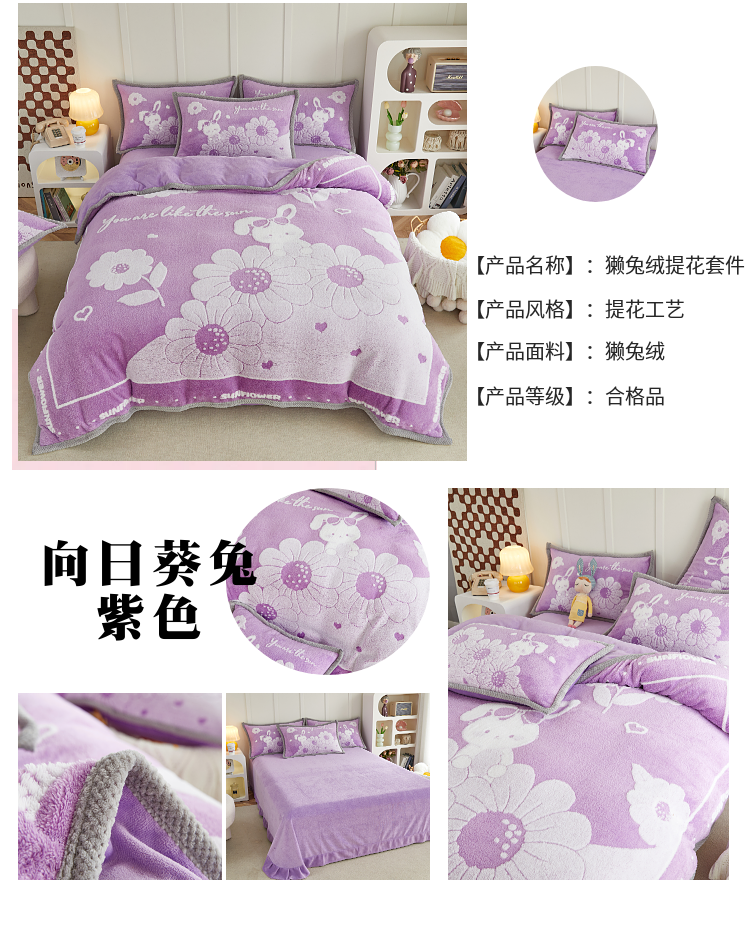 商品名称:丝羽坊 2022新款獭兔绒大版提花四件套 向日葵兔紫色